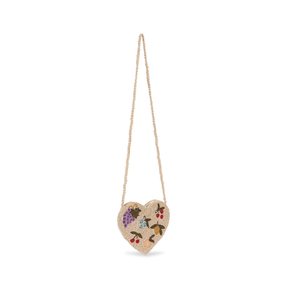 A Konges Slojd szív alakú táskája egy bájos kiegészítő, amely varázslatossá varázsolja a gyermekek öltözékét.