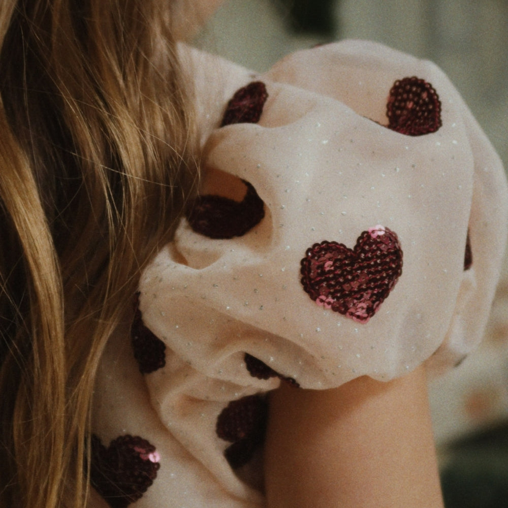Konges Slojd Tüll ruha lányoknak flitterekkel Heartlily Amour Plum