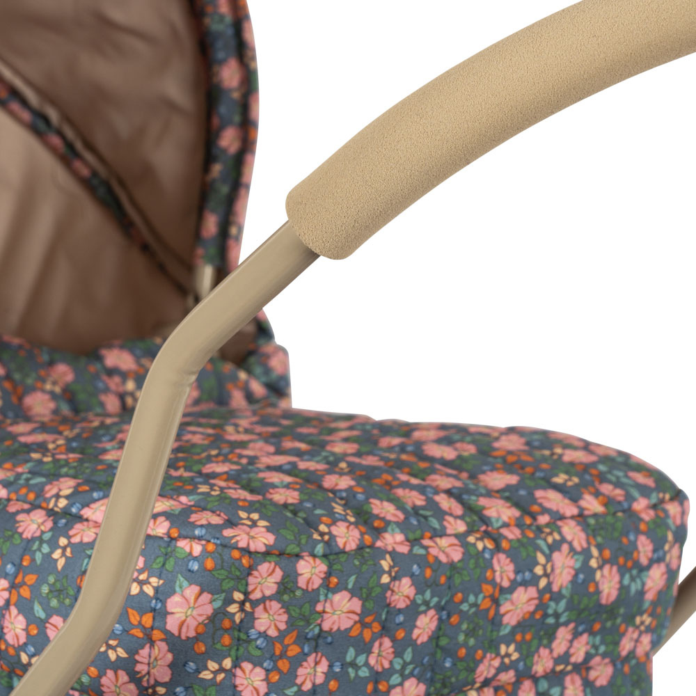 A babahordozó alatt praktikus kosár található az apróságok számára, a puha, szivacsos fogantyúkkal ellátott fémkeret pedig biztonságos és kényelmes fogást biztosít.