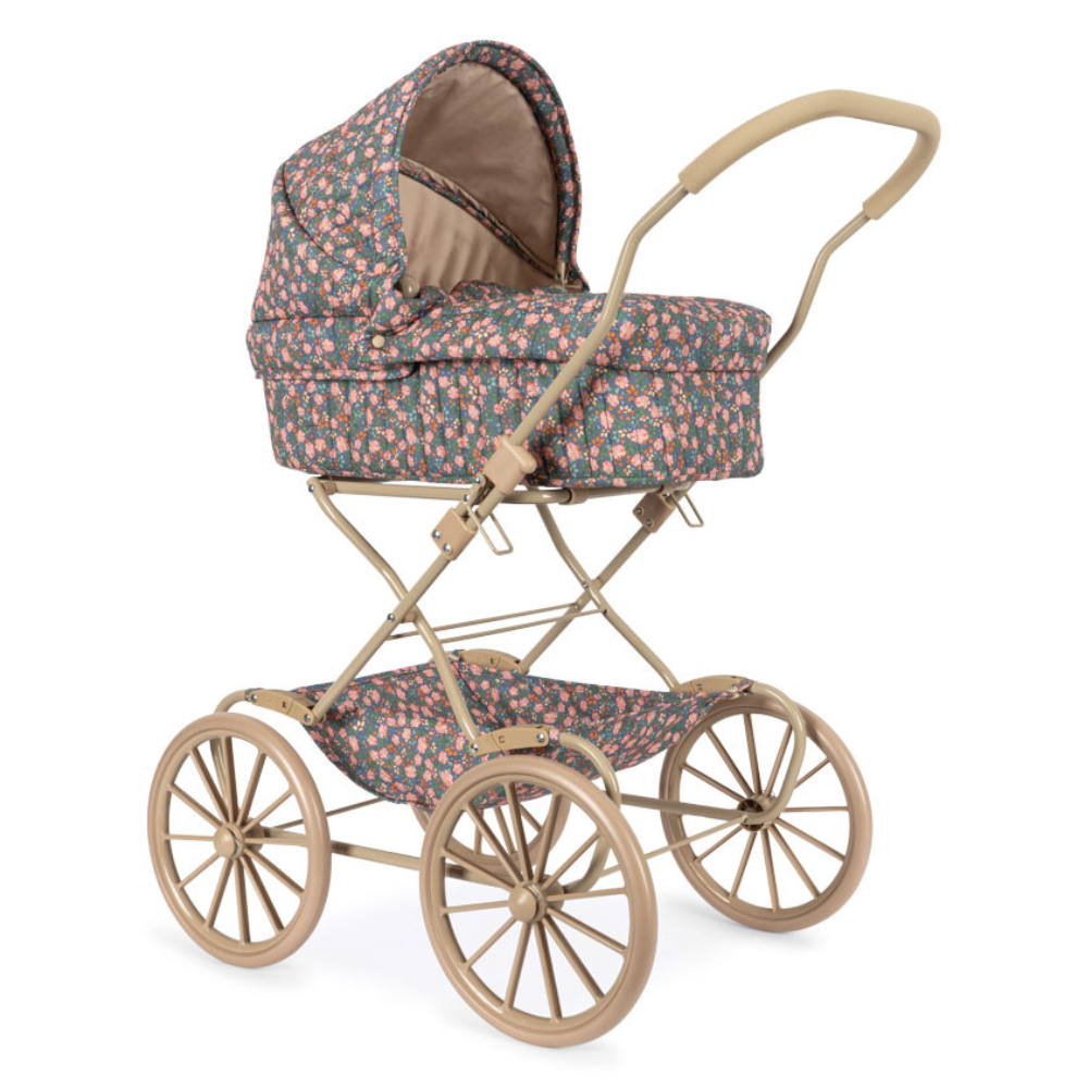 Ez az elegáns babakocsi a vintage stílus világába repíti a szórakozást: négy nagy kerék, puha steppelt szövet, finom hullámos szegélyek és egy kényelmes matrac kényelmes helyet teremt kedvenc babádnak.