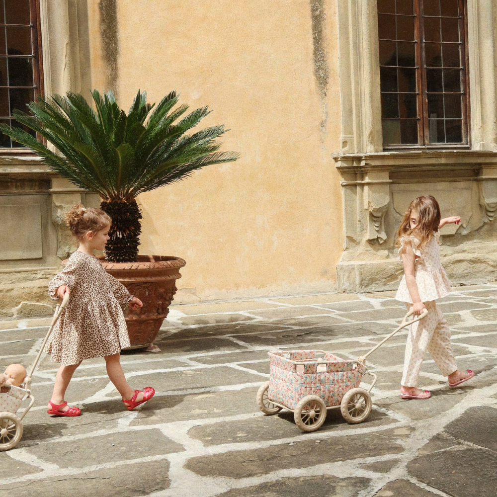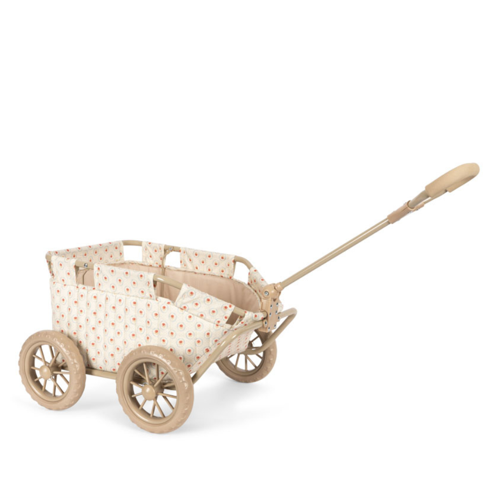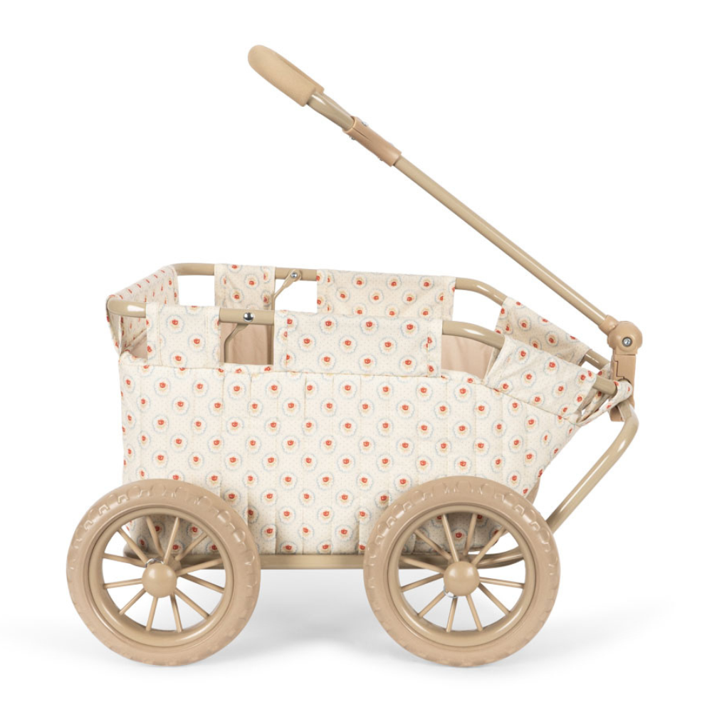 A Konges Slojd babakocsi egy gyönyörűen részletesen kidolgozott játékkocsi, amely lehetővé teszi gyermeke számára, hogy kedvenc mackóit, babáit és plüssállatait sétálni vigye a ház körül vagy a teraszon.