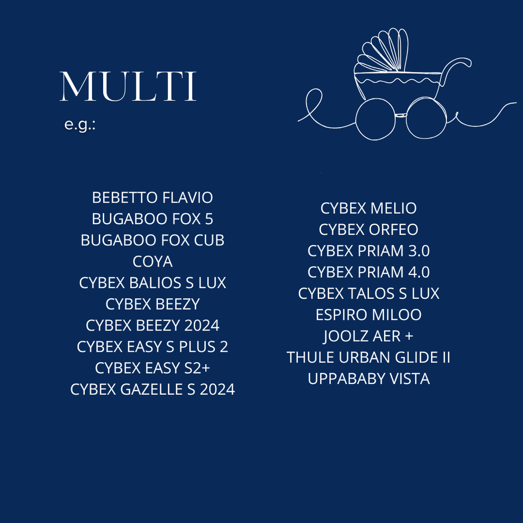 A La Millou multi babakocsibetétnek akár 4 nyílása is van a biztonsági övnek és 2 nyílás az Angel Wing párnának.