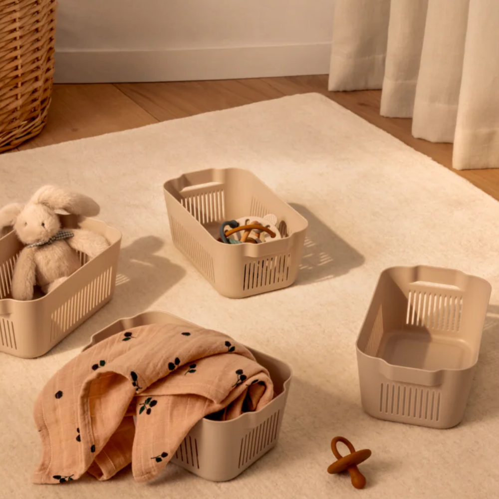 A kosárkészlet segít felkarolni az apróságokat: az apró játékokat, zoknikat, művészeti kiegészítőket és a kisgyermek minden kincsét.