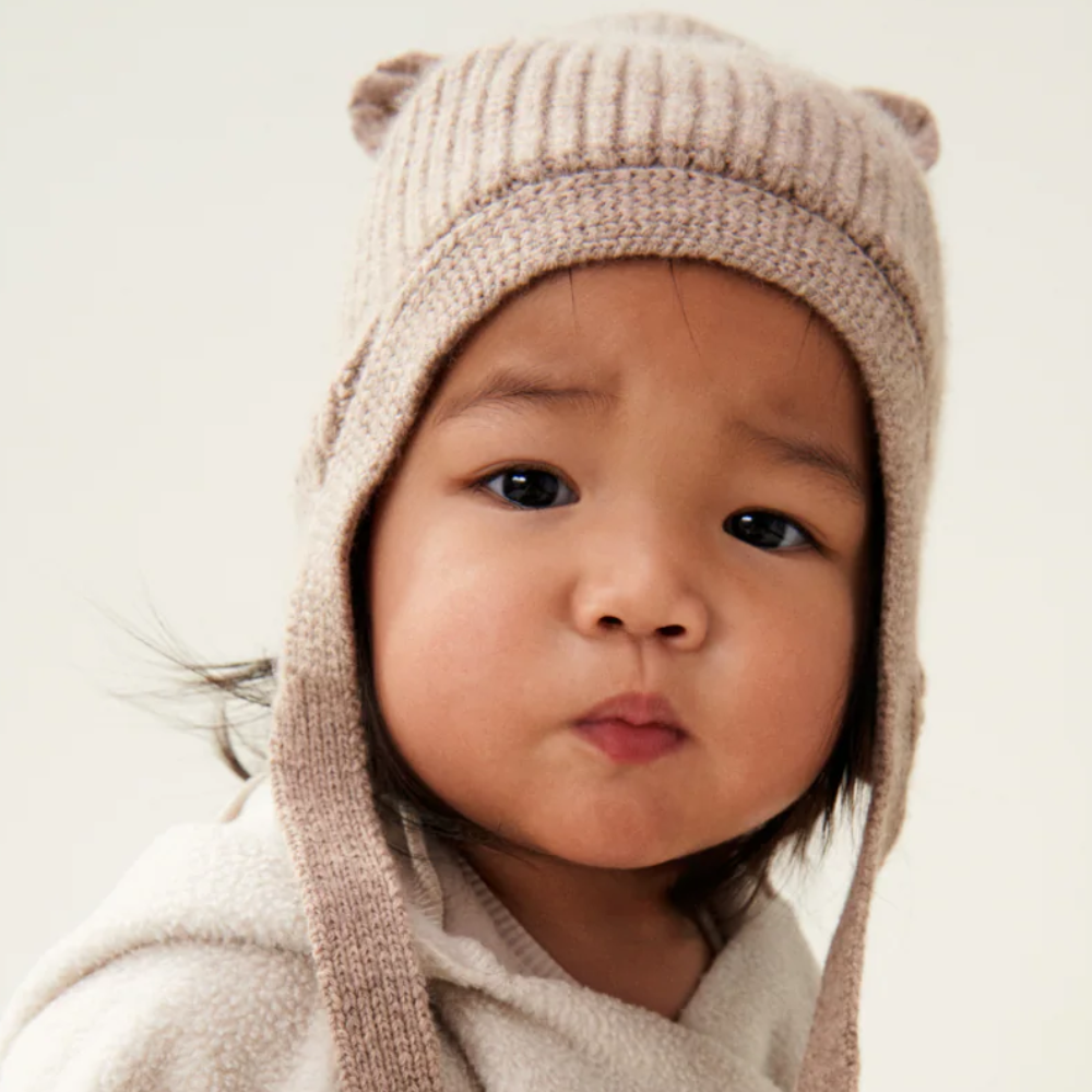 A Liewood természetes, tapintható anyagokra támaszkodik, így a sapka meleg, lélegző és kényelmes még a kicsik érzékeny bőrének is.