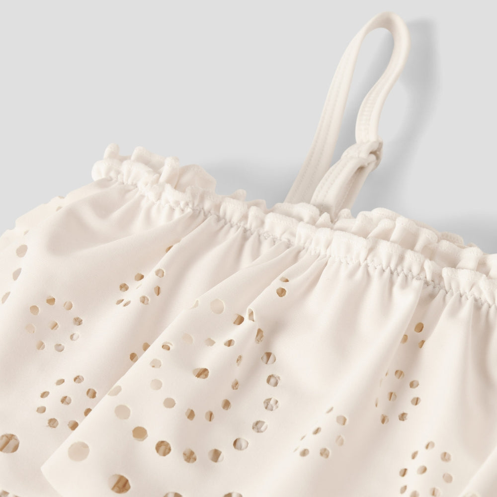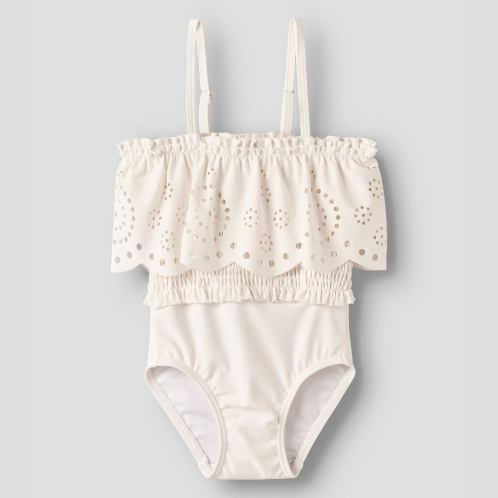Ez a Lil' Atelier fürdőruha a stílust, a kényelmet és a környezetvédelem szempontjait ötvözi. A lágy krémszínű árnyalatú, egyrészes szabású darabot olyan lányoknak tervezték, akik szeretnek a vízben játszani és a napsütéses nyári napokat szeretik.