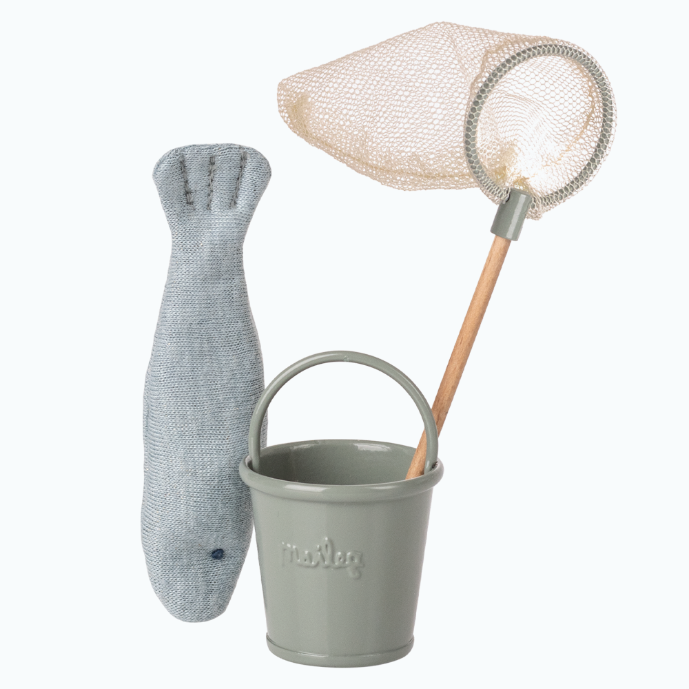 A Maileg horgászkészlet egy imádnivaló kis tárgy, amely tökéletesen kiegészíti a kis figurák házát és kellékeit.