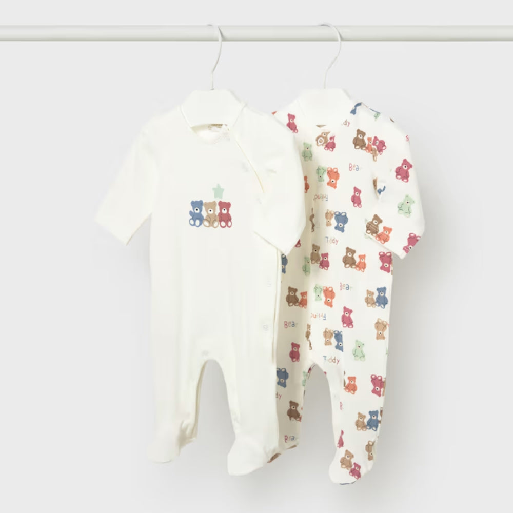 Ez a praktikus Mayoral szett két hosszú, hálóruhaszerű pizsamából áll, amelyeket a baba érzékeny bőrét szem előtt tartva terveztek.