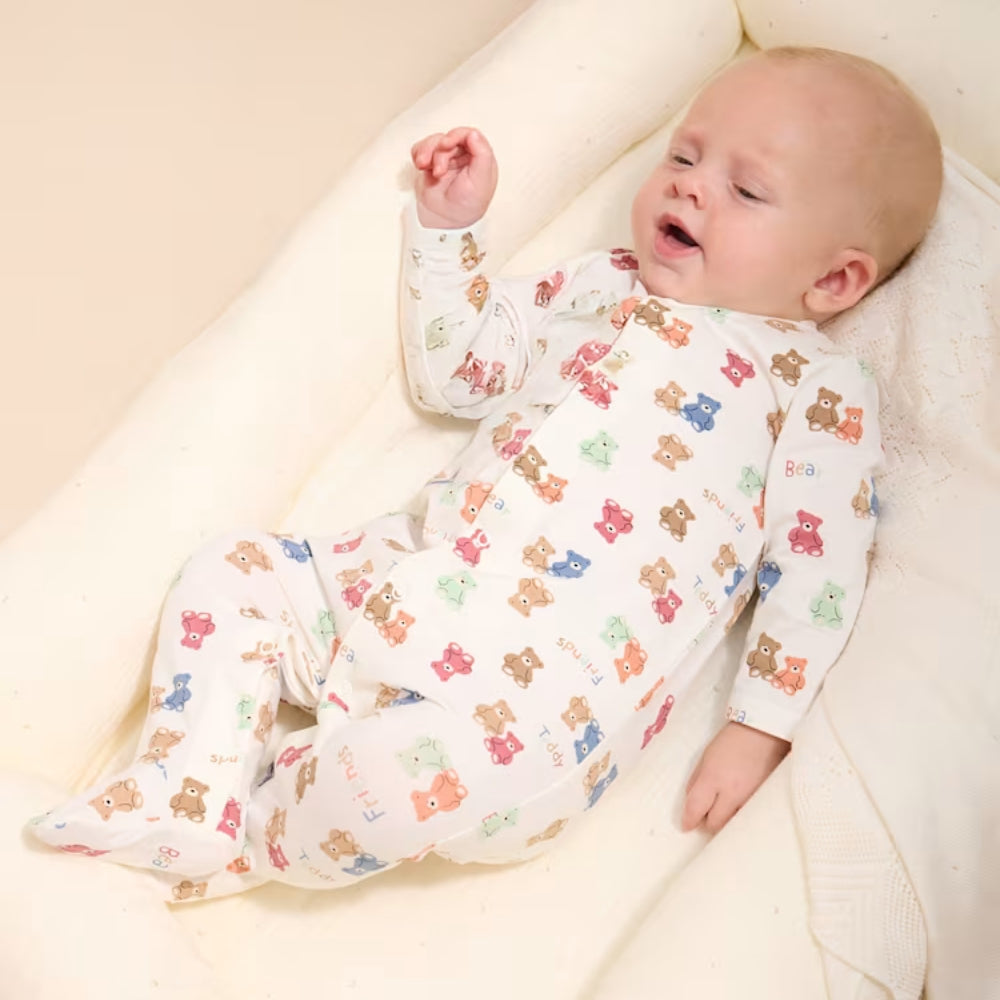 Az élénk színek és minták aranyos, színes mackókkal az egész szettnek finom és gyermeki jelleget kölcsönöznek, amely tökéletesen illeszkedik a baba fekvőfelszereléséhez.