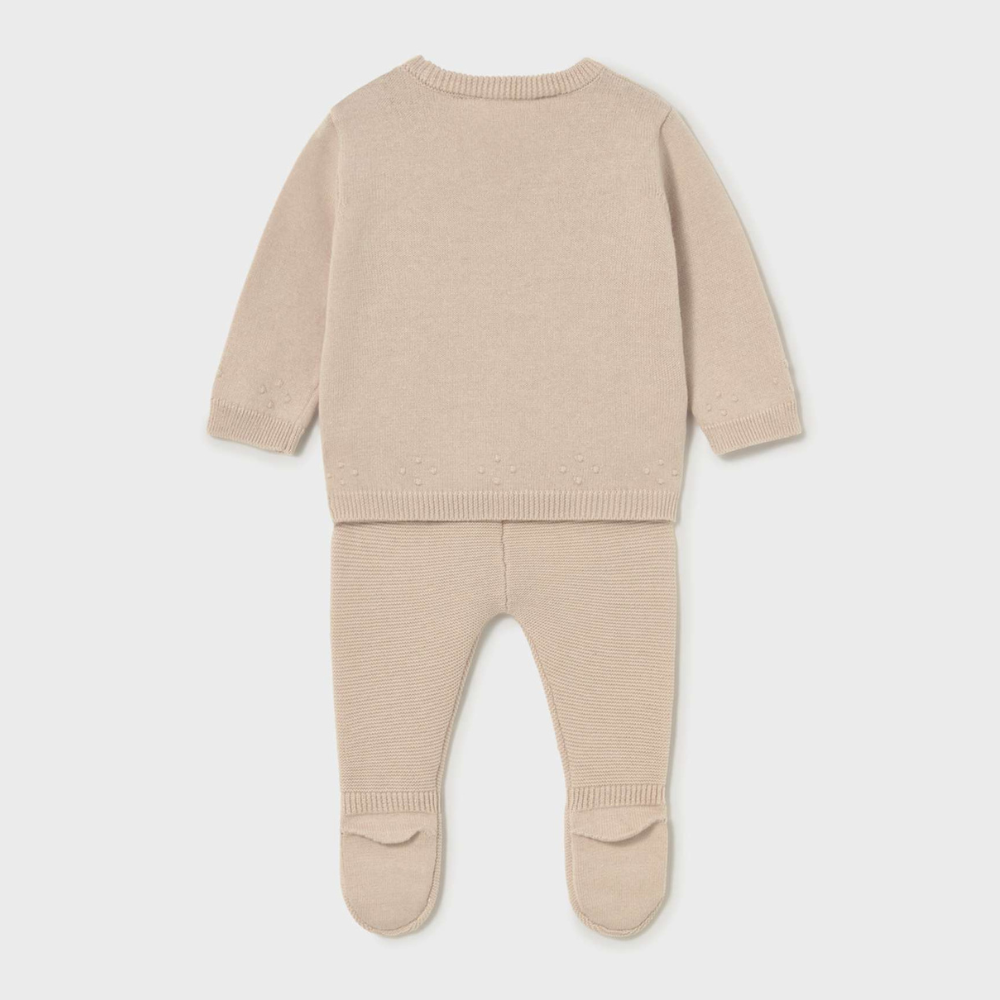 A szett, amely egy félalvóból és egy trikó pulóverből áll, tökéletes a mindennapi viselethez vagy a babaágy részeként.