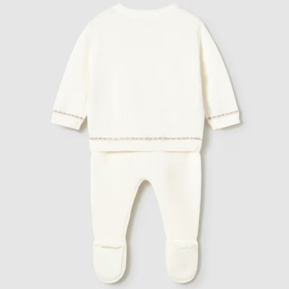 A szett, amely egy félalvóból és egy trikó pulóverből áll, tökéletes a mindennapi viselethez vagy a babaágy részeként.