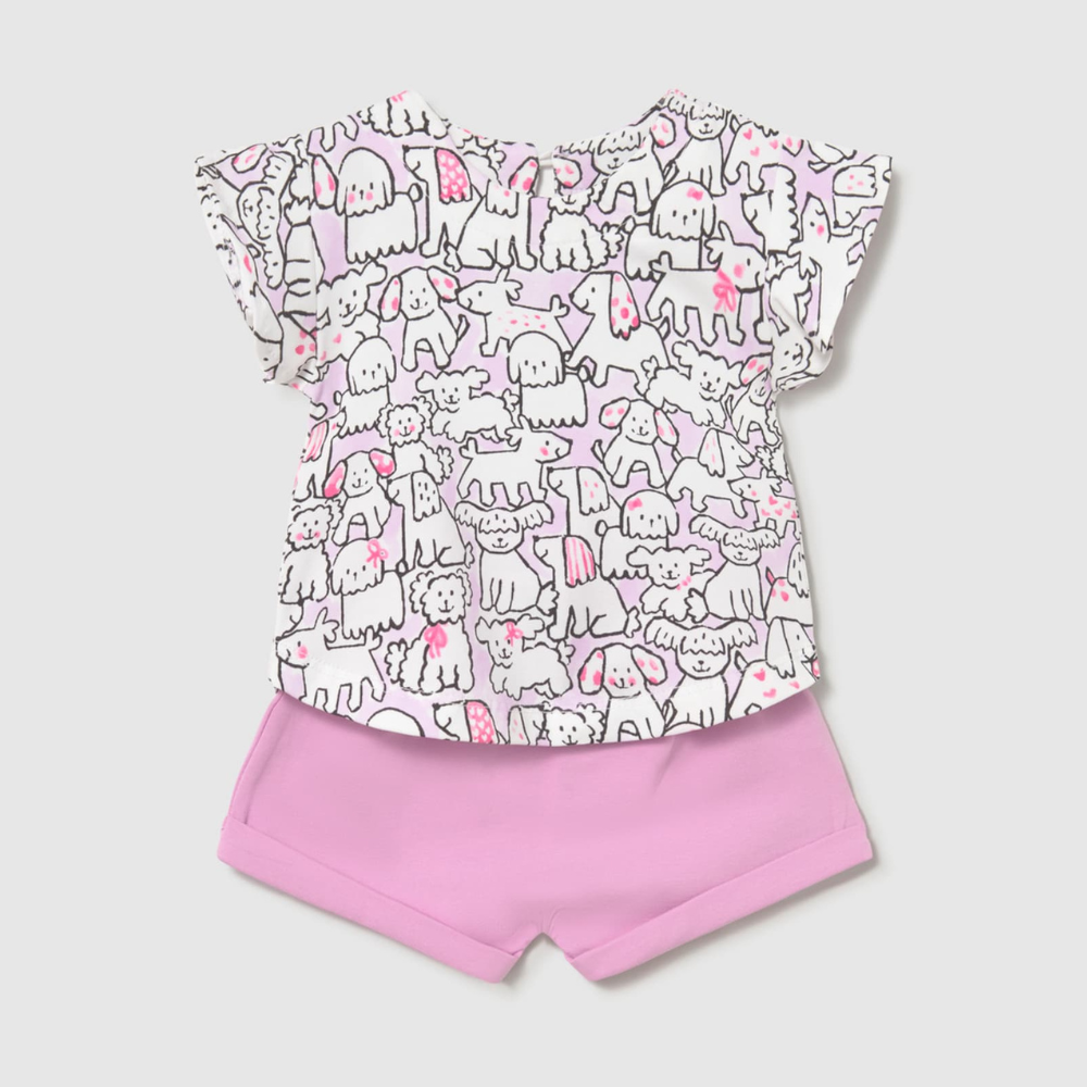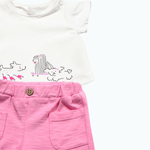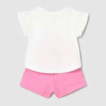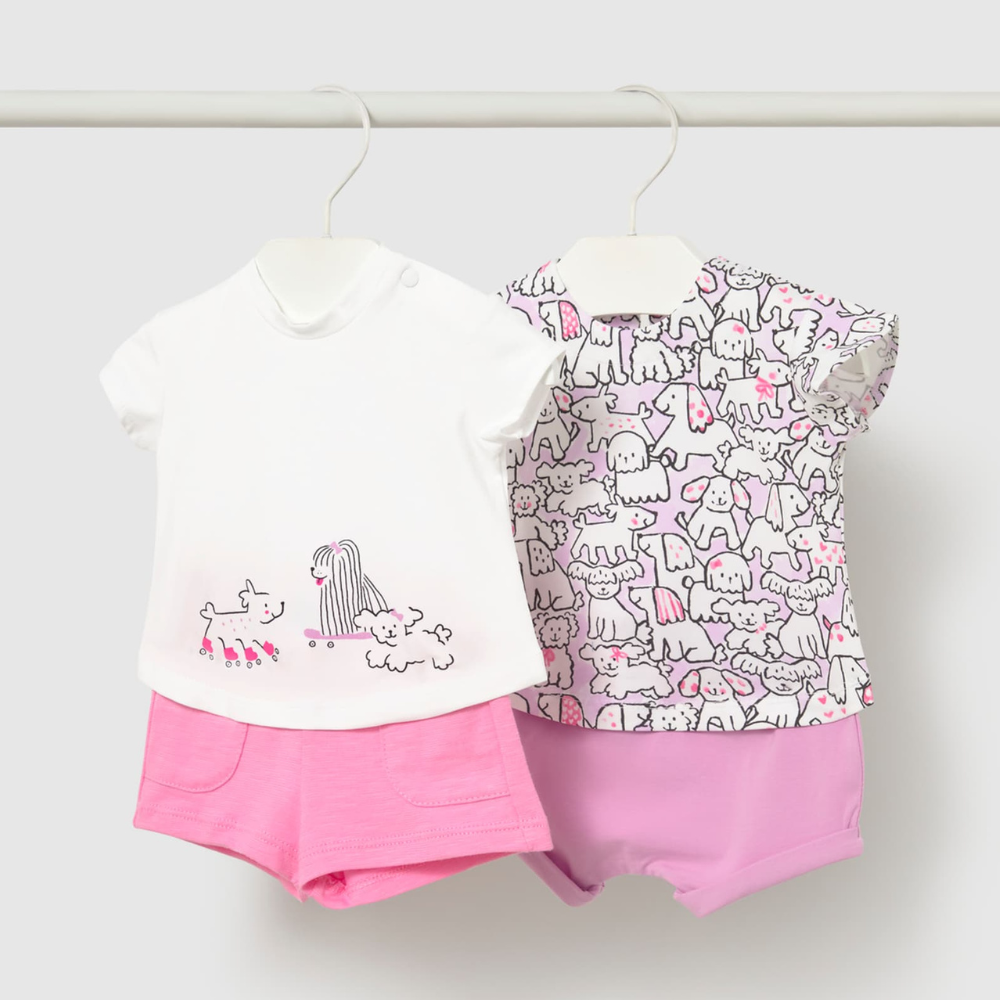 Ez a babakészlet négy darabból áll, köztük két pólóból és két rövidnadrágból, amelyek tetszés szerint kombinálhatók.