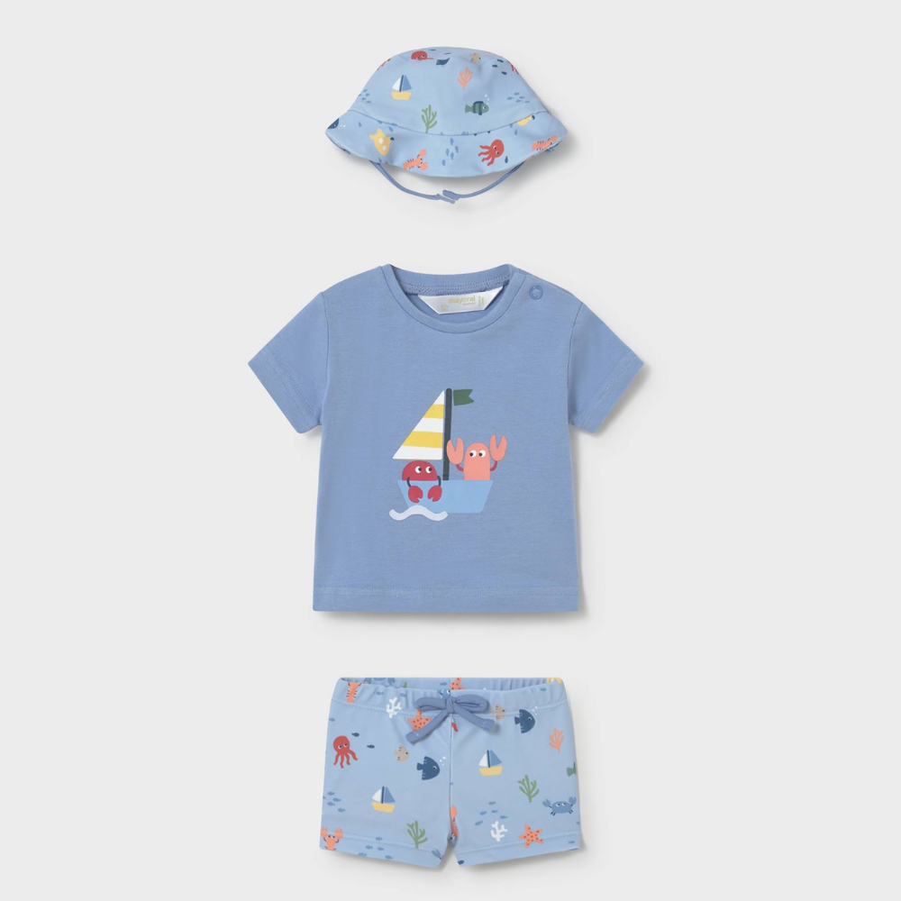 Mayoral csecsemő háromrészes úszókészlet UV védelemmel Sailboat
