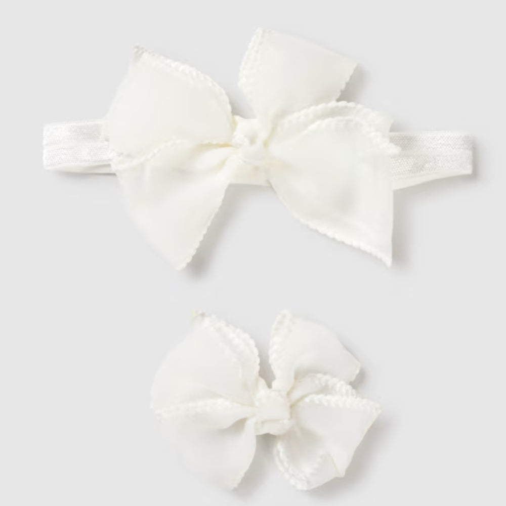 Mayoral elasztikus fejpánt masni tűvel újszülött babának Cream