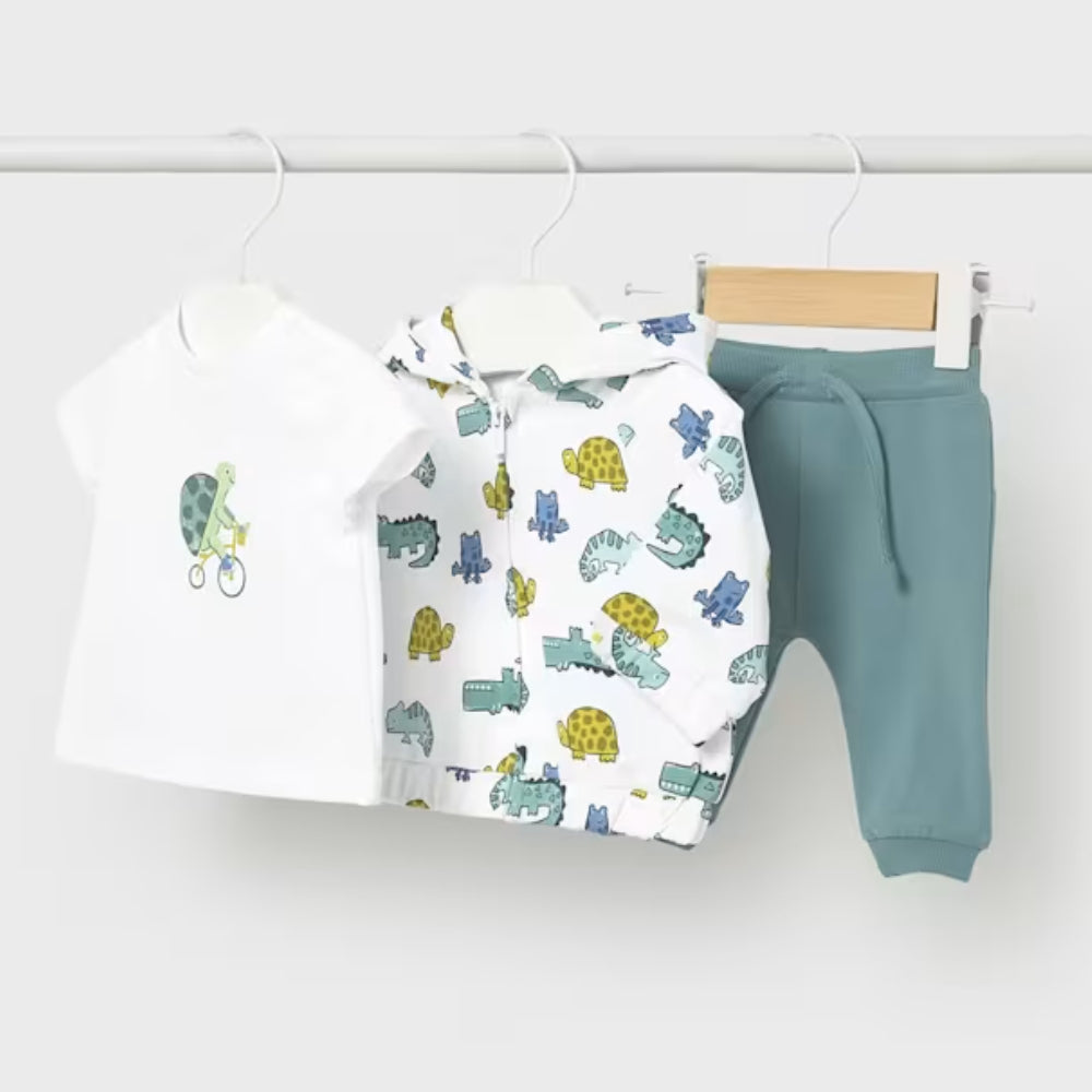Ez a Mayoral baba-fiú szett három darabból áll, amelyek az élet első napjaitól kezdve kényelmet és stílust biztosítanak.