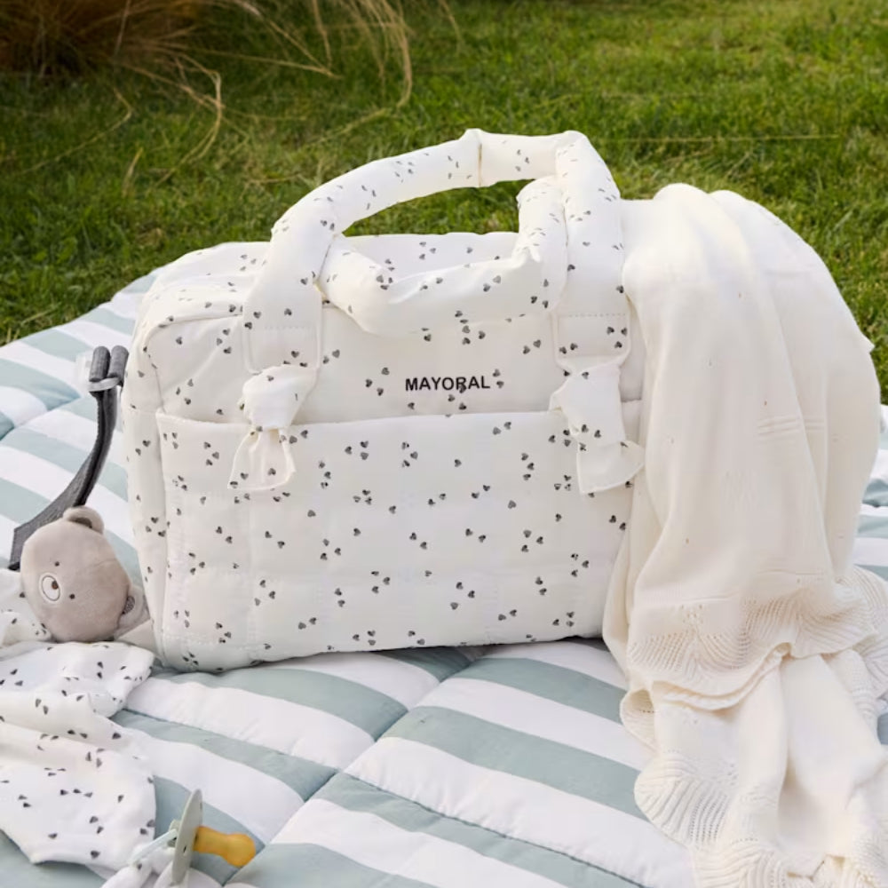 A Mayoral Mummy Bag praktikus és stílusos megoldás, amelyet a kisgyermekes szülők mindennapi igényeinek kielégítésére terveztek.