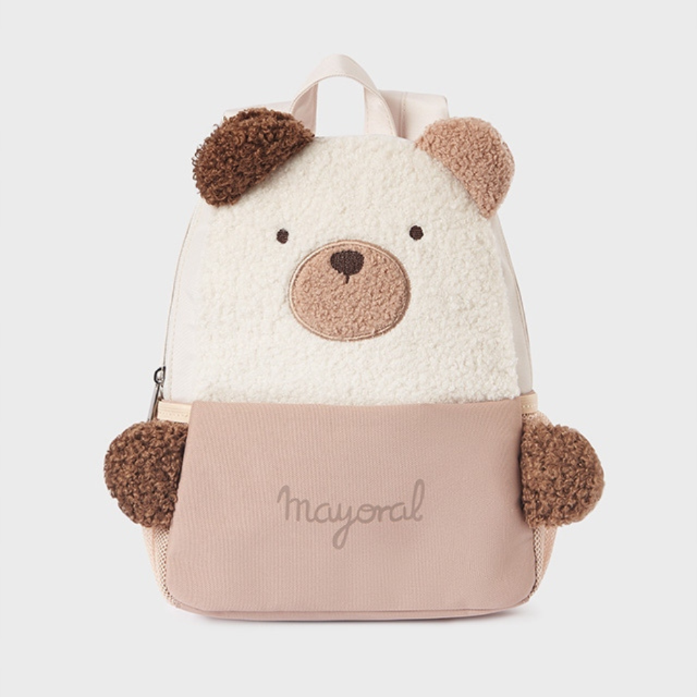 Teddy maci óvodai hátizsák barna színben, vidám fülekkel és mancsokkal a Mayoral-tól.