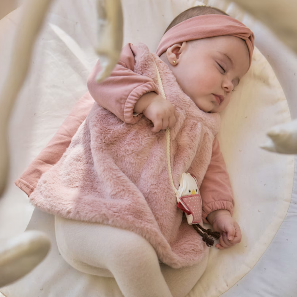A puha anyag körülveszi a baba bőrét, míg a fodrok és a finom redők kényelmet nem rontva teszik még bájosabbá.