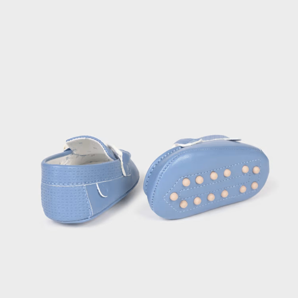 A Mayoral újszülött babacipő elegáns kiegészítője a baba első ruhájának.