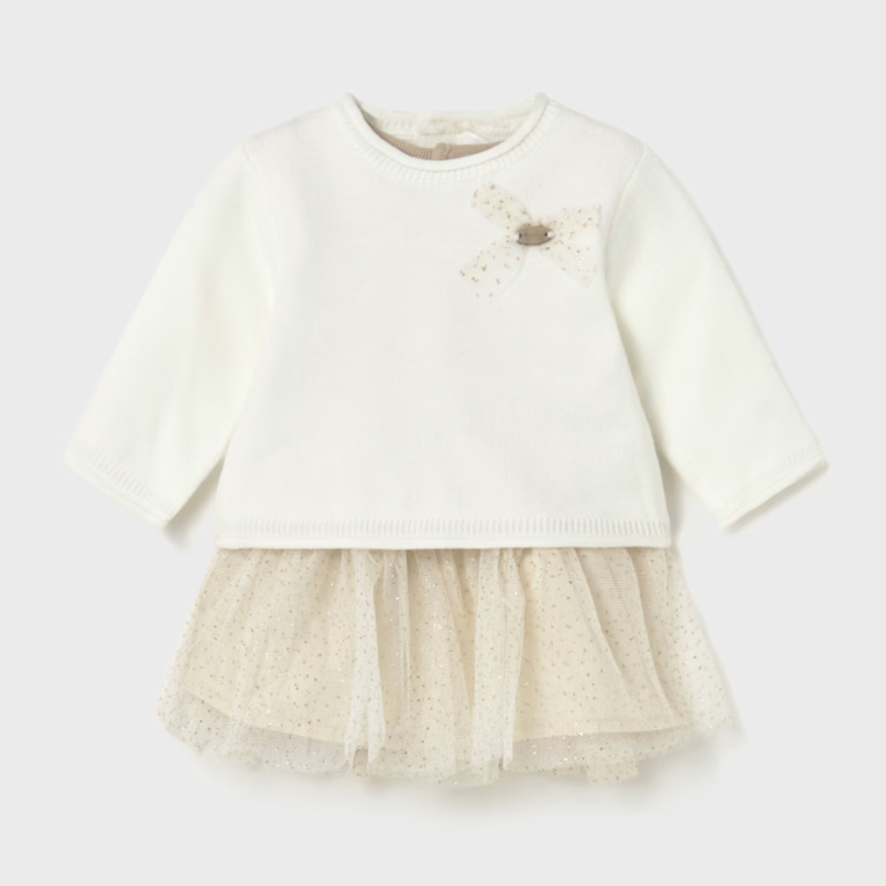 Mayoral újszülött szett pulóverrel és ruhával Cream