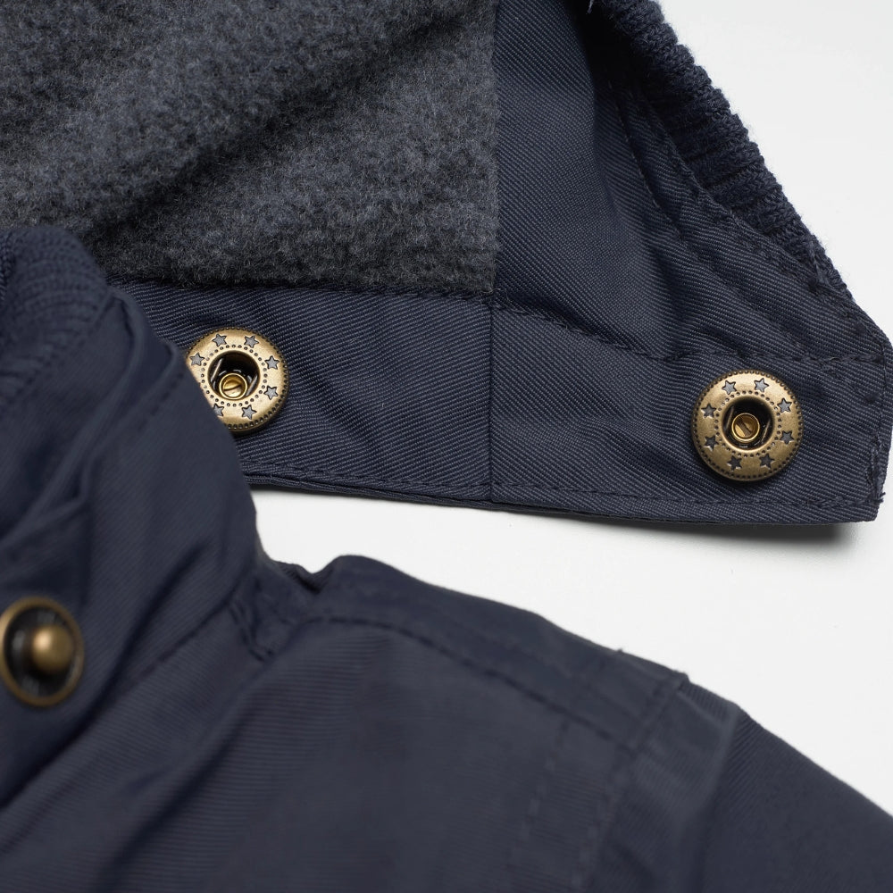 Ezek közé tartozik az állvédővel ellátott dupla cipzár, a levehető kapucni nyomógombokkal és a tökéletes illeszkedést biztosító húzózsinórral ellátott szegély.