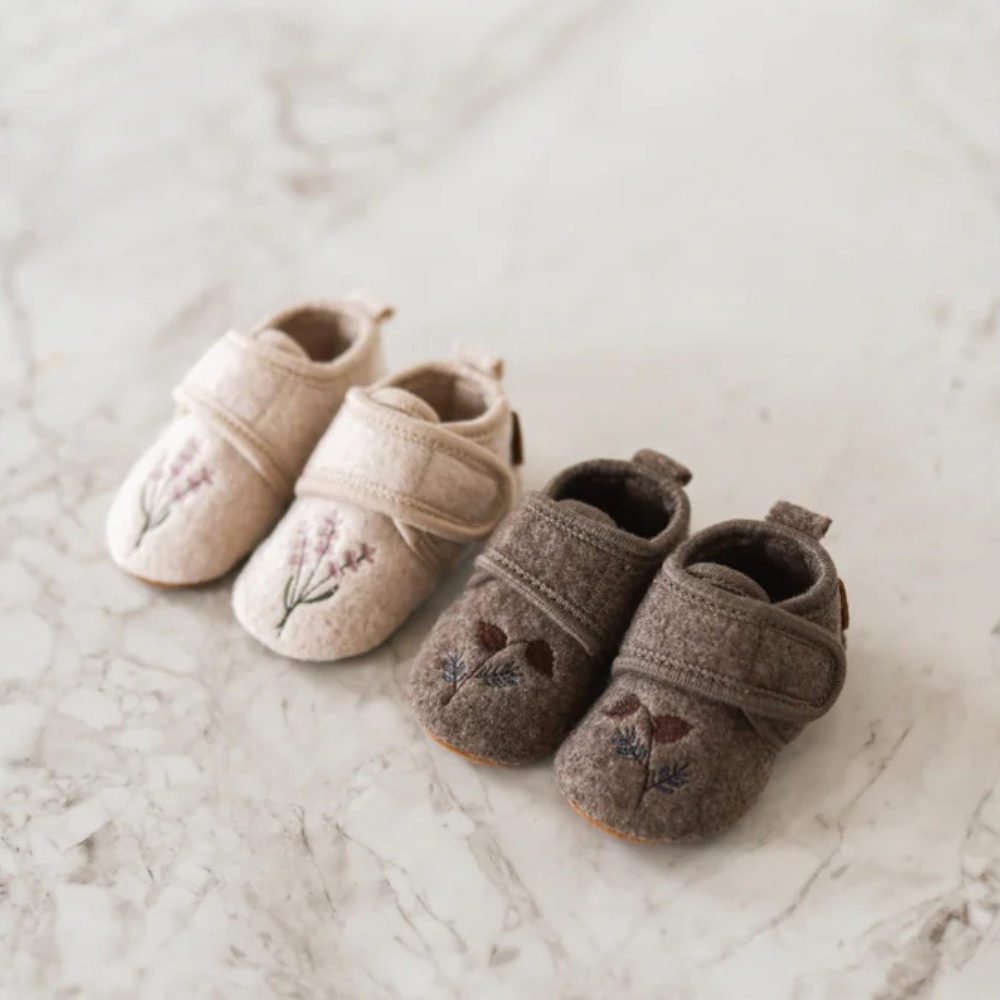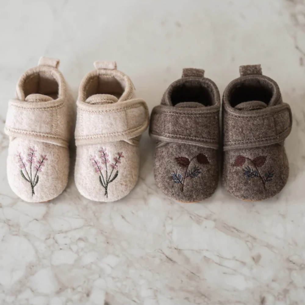 A Mikk Line gyapjú babacipő puha előcipő az otthonba, amely melegségbe burkolja a kicsi lábát, és minden évszakban kényelmet biztosít.