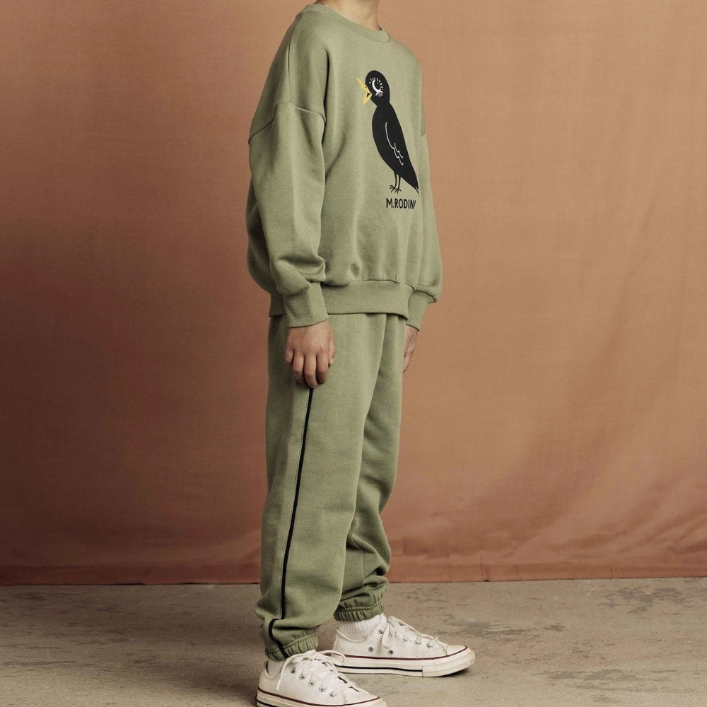 Bio pamut fiú pulóver feketerigó nyomtatással a Mini Rodinitől.