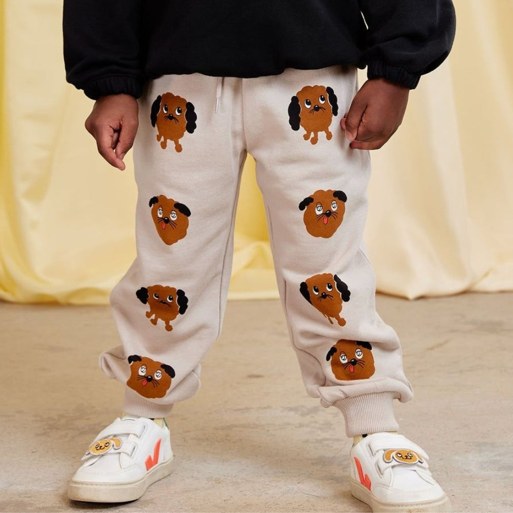 A Mini Rodini melegítőnadrág a jellegzetes kutyusos mintának köszönhetően kiemelkedik a hétköznapi ruhák közül, a gyerekek pedig szívesen viselik.