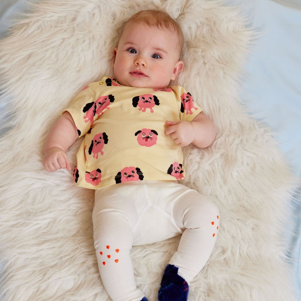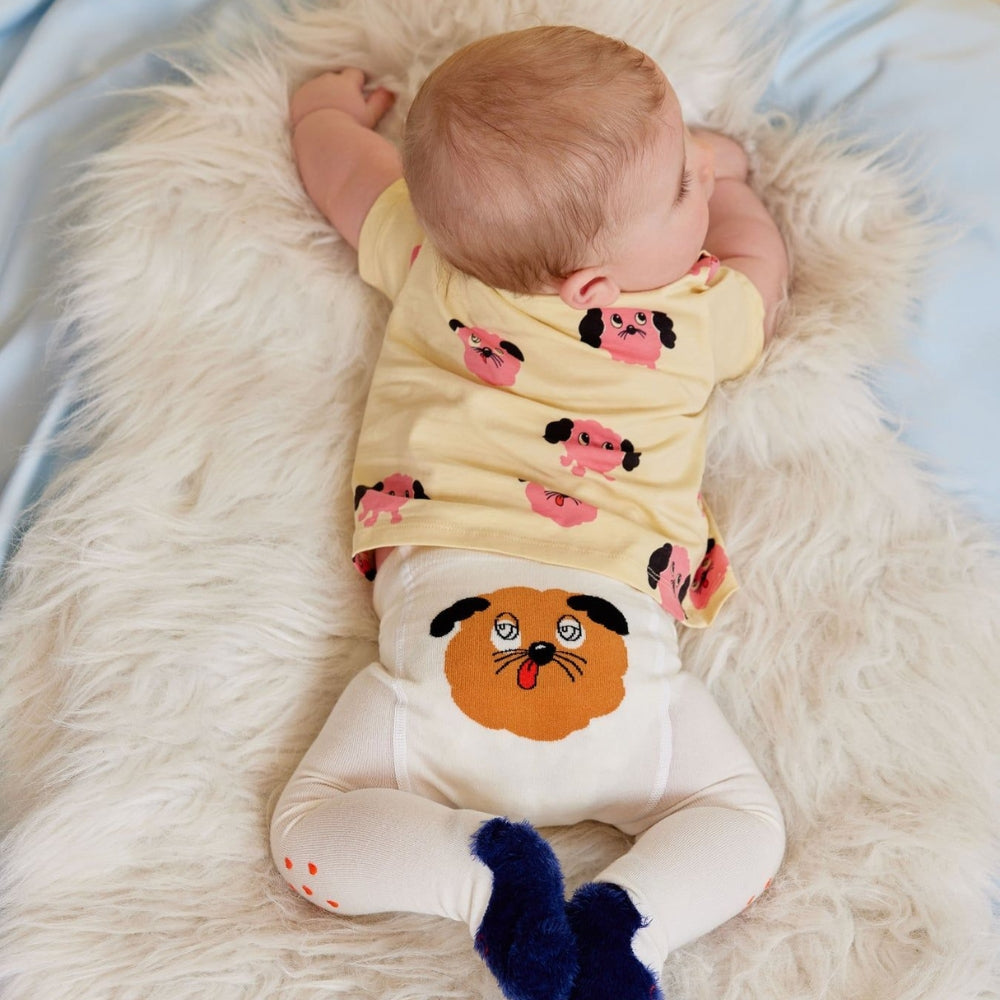 A Mini Rodini márka gondoskodott a jellegzetes, játékos Doggies mintáról, amely azonnal szemet gyönyörködtető.
