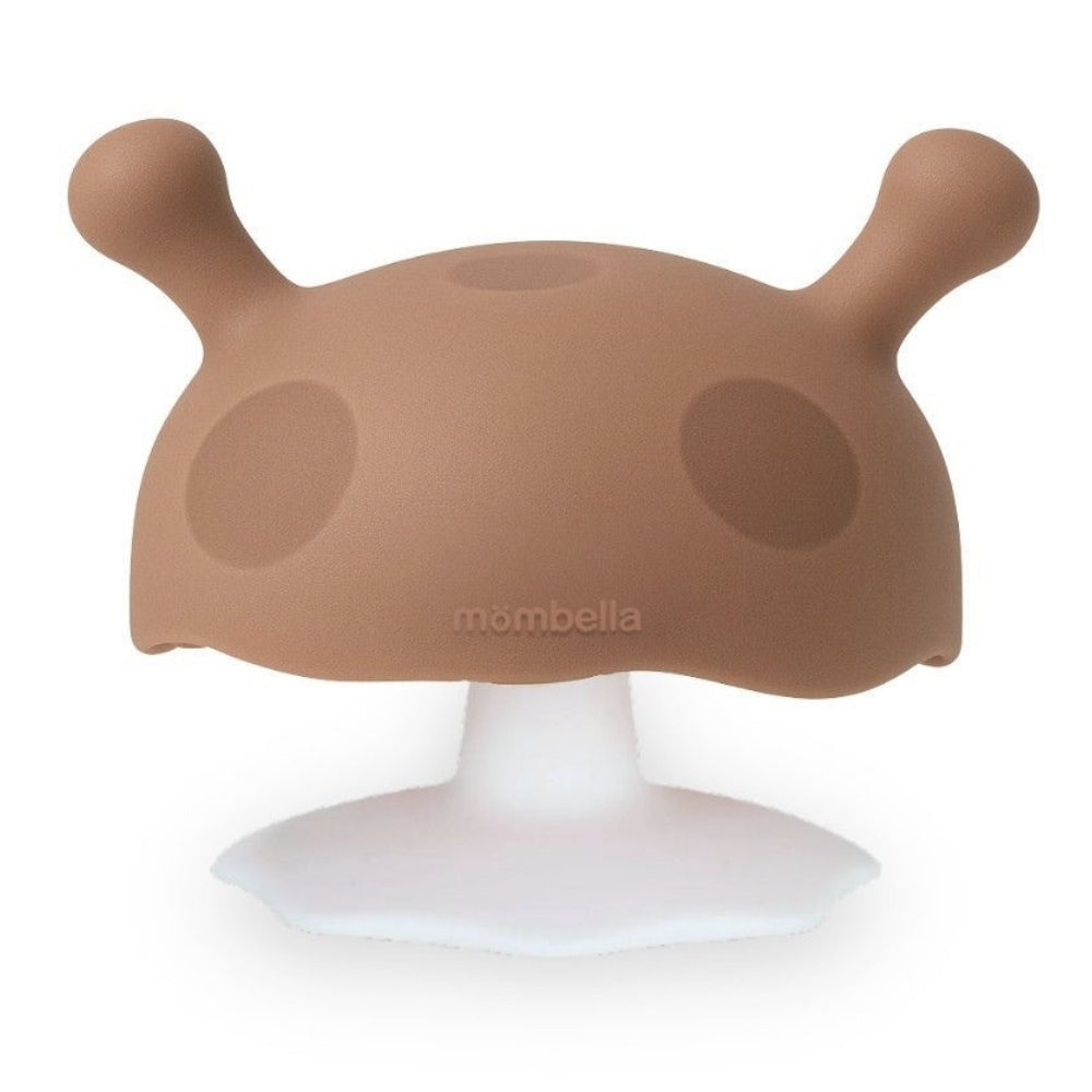 A Mombella Mushroom Mocha Loca harapófogó egy gondosan megtervezett baba fogzási finomság, amely a nyugtató funkciót biztonságos, érzékszervi játékkal ötvözi.