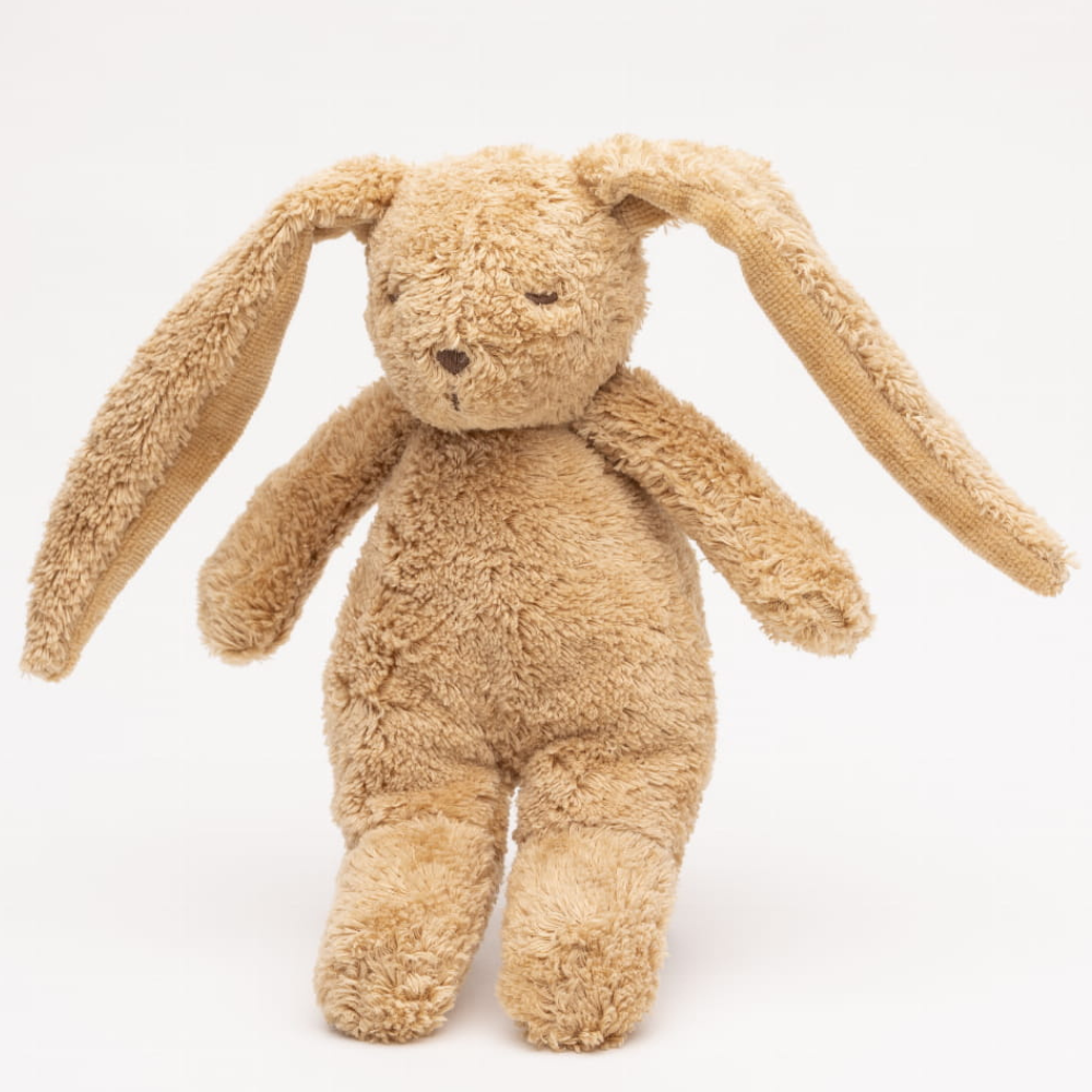 A Moonie márka itt biztonságos, tapintható anyagokat - bio pamutot és puha tölteléket - használt, így a játék a babák érzékeny bőrére is alkalmas.