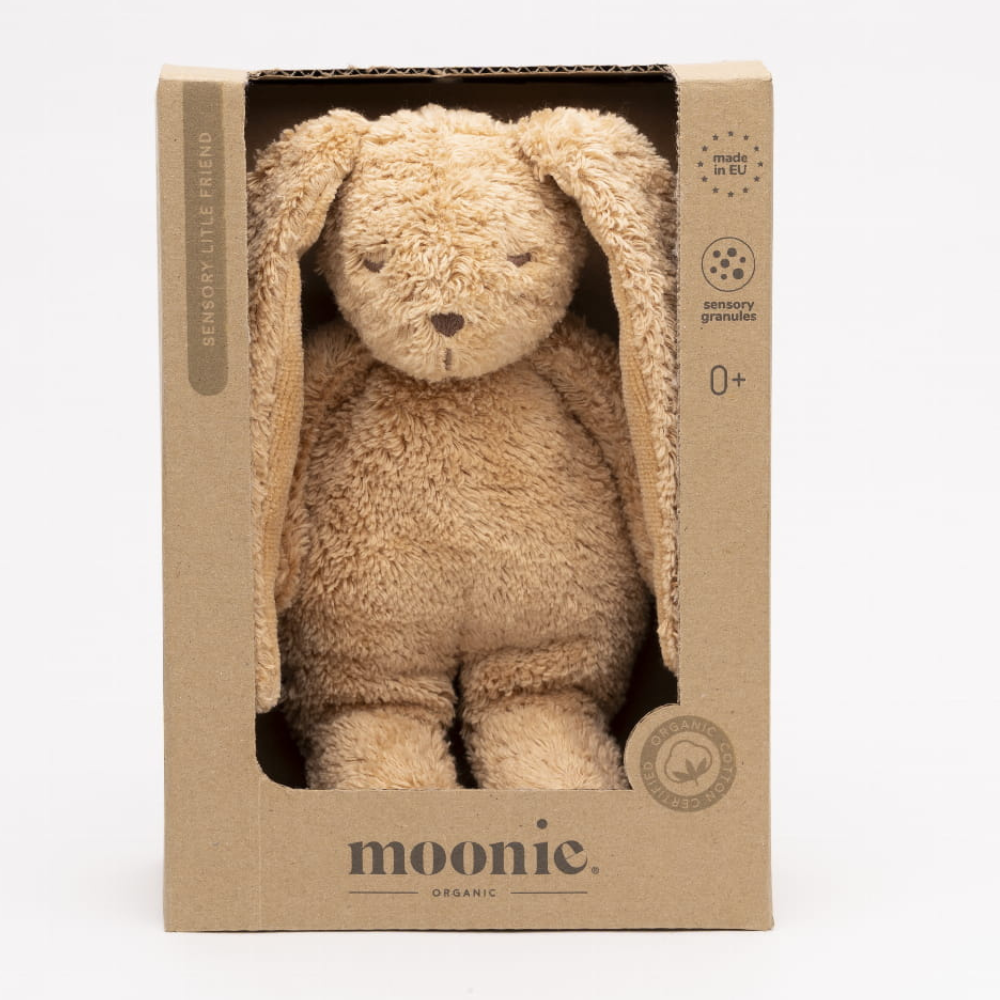 A Moonie szenzoros mackó tökéletes első társ a baba számára, hogy az első naptól kezdve támogassa a fejlődést.