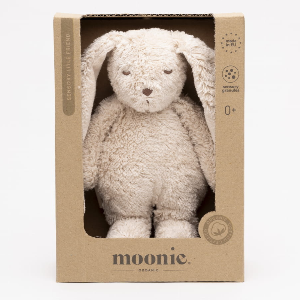 A Moonie szenzoros mackó tökéletes első társ a baba számára, hogy az első naptól kezdve támogassa a fejlődést.