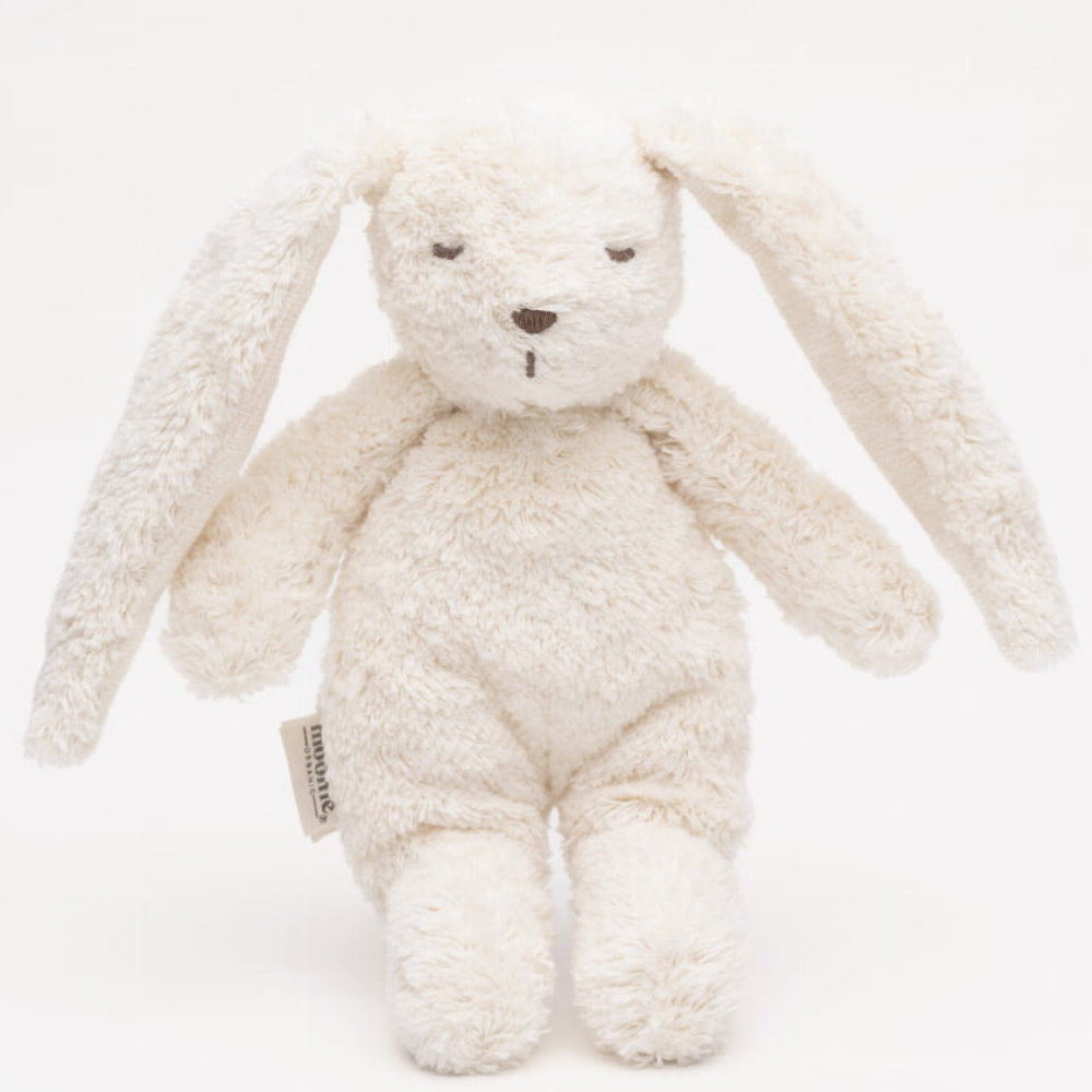 A Moonie márka itt biztonságos, tapintható anyagokat - bio pamutot és puha tölteléket - használt, így a játék a babák érzékeny bőrére is alkalmas.