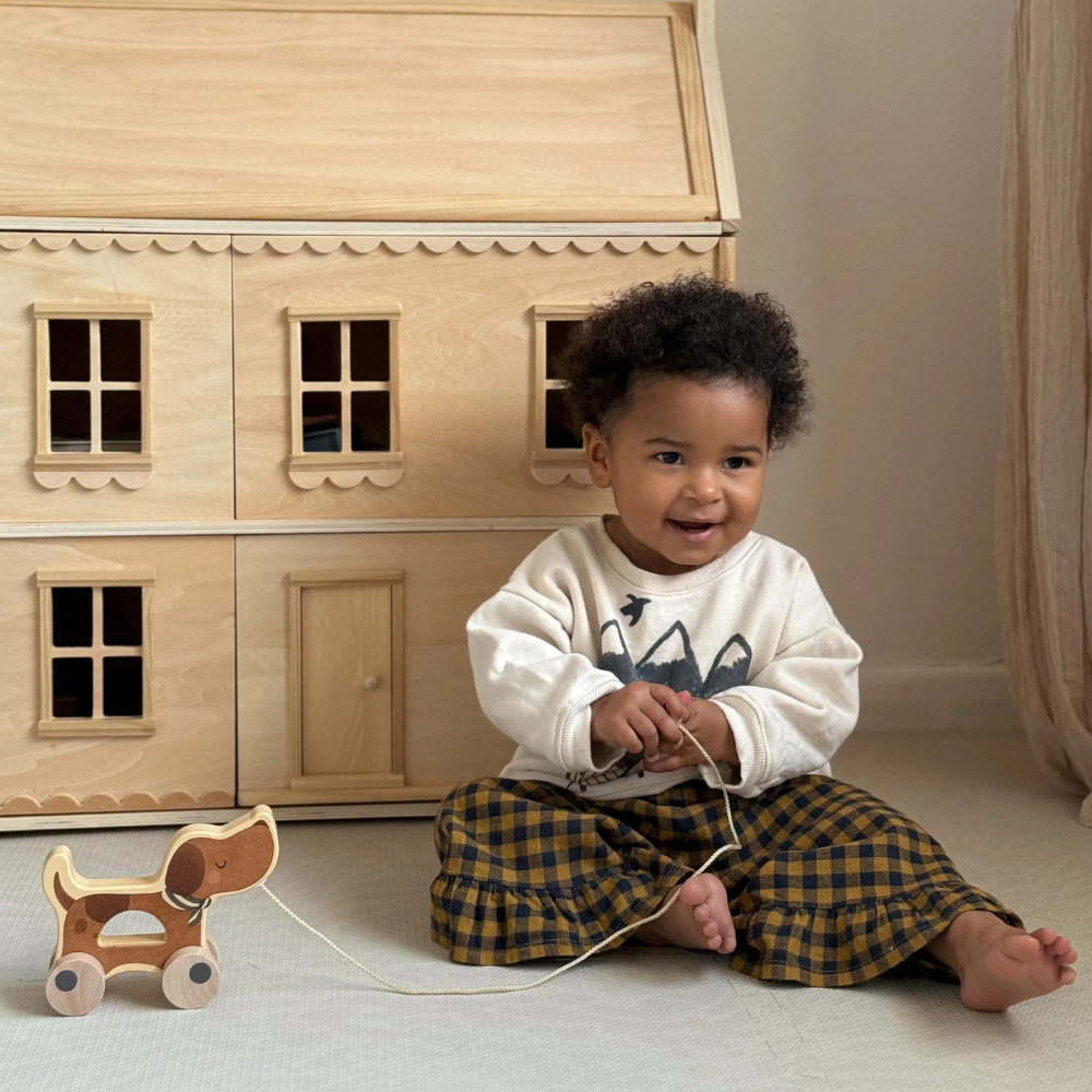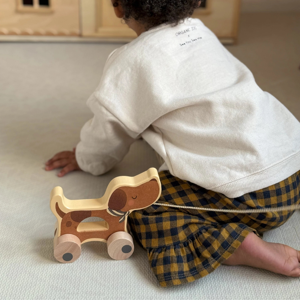 A Mrs Ertha fából készült kerekes kutya imádnivaló társ az első sétákhoz és a mindennapi kalandokhoz.