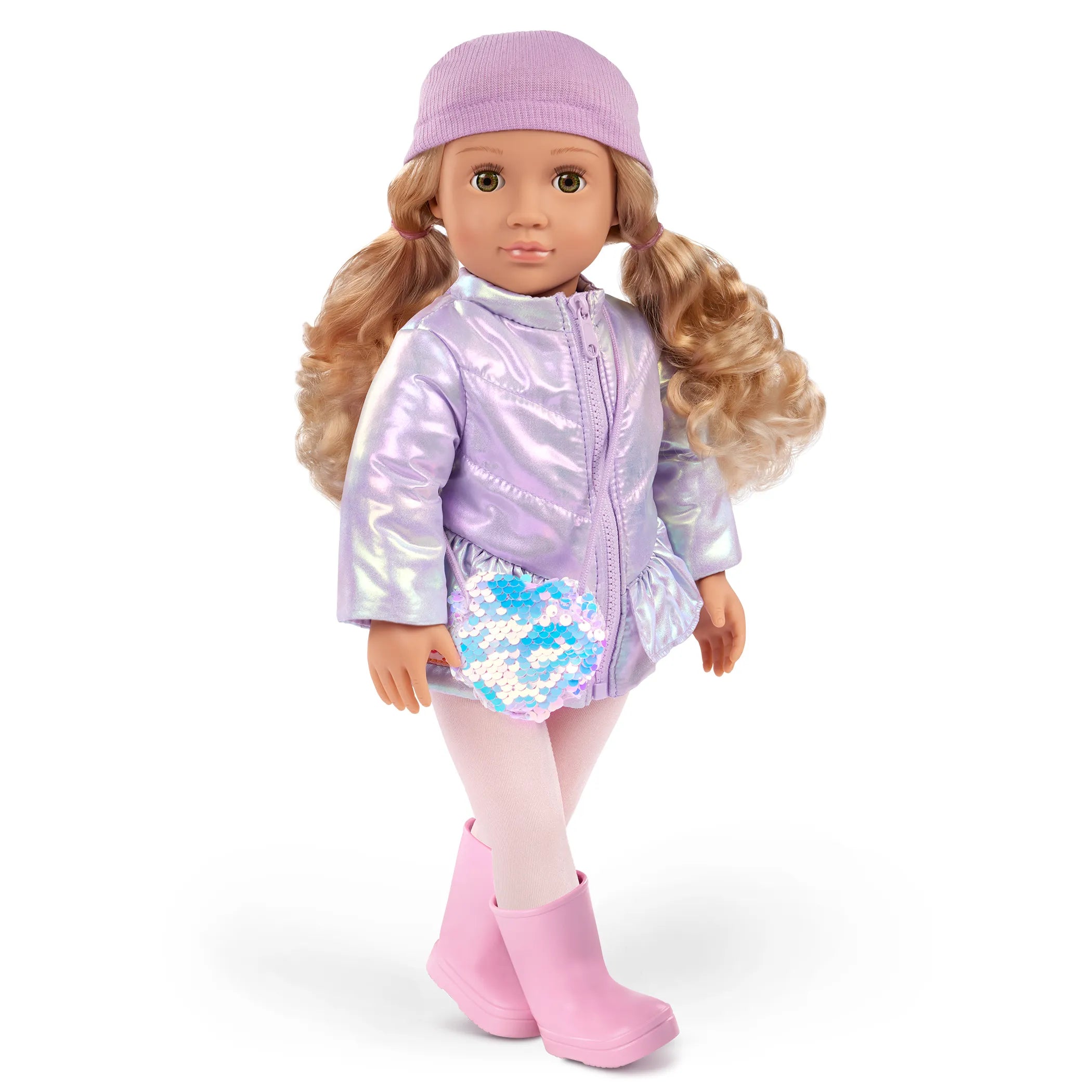 A Winter Sparkle szett fémes fodros pehelykabáttal és csillogó kiegészítőkkel örvendeztet meg, amelyek megragadják a tekintetet, és bájt kölcsönöznek minden téli kalandnak.