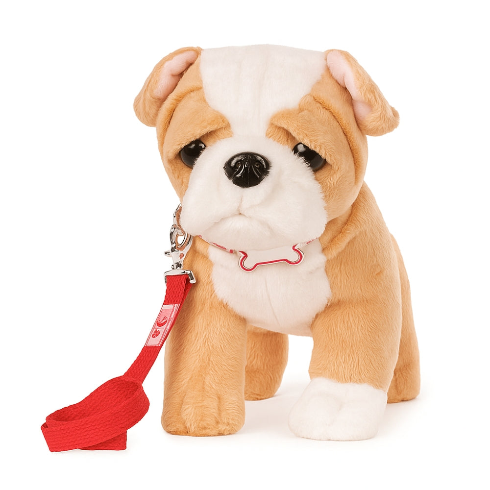 Az Our Generation Bulldog cuddly kölyökkutya egy imádnivaló plüss kiskutya nyakörvvel és pórázzal, készen áll a sétákra és a napi gondozásra.