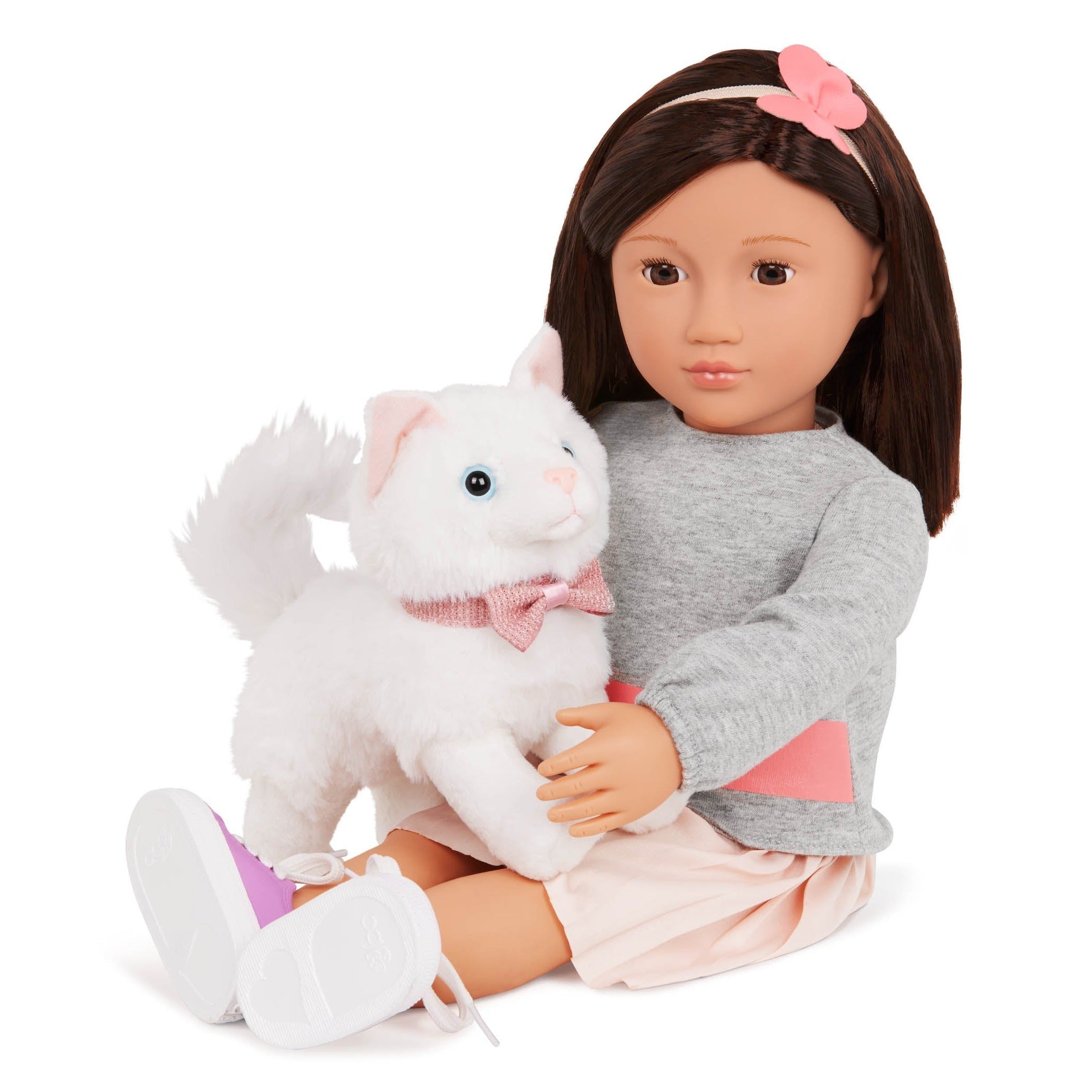 Aranyos török angóra macska kabalaállat állítható végtagokkal és nyakörvvel az Our Generation-től.