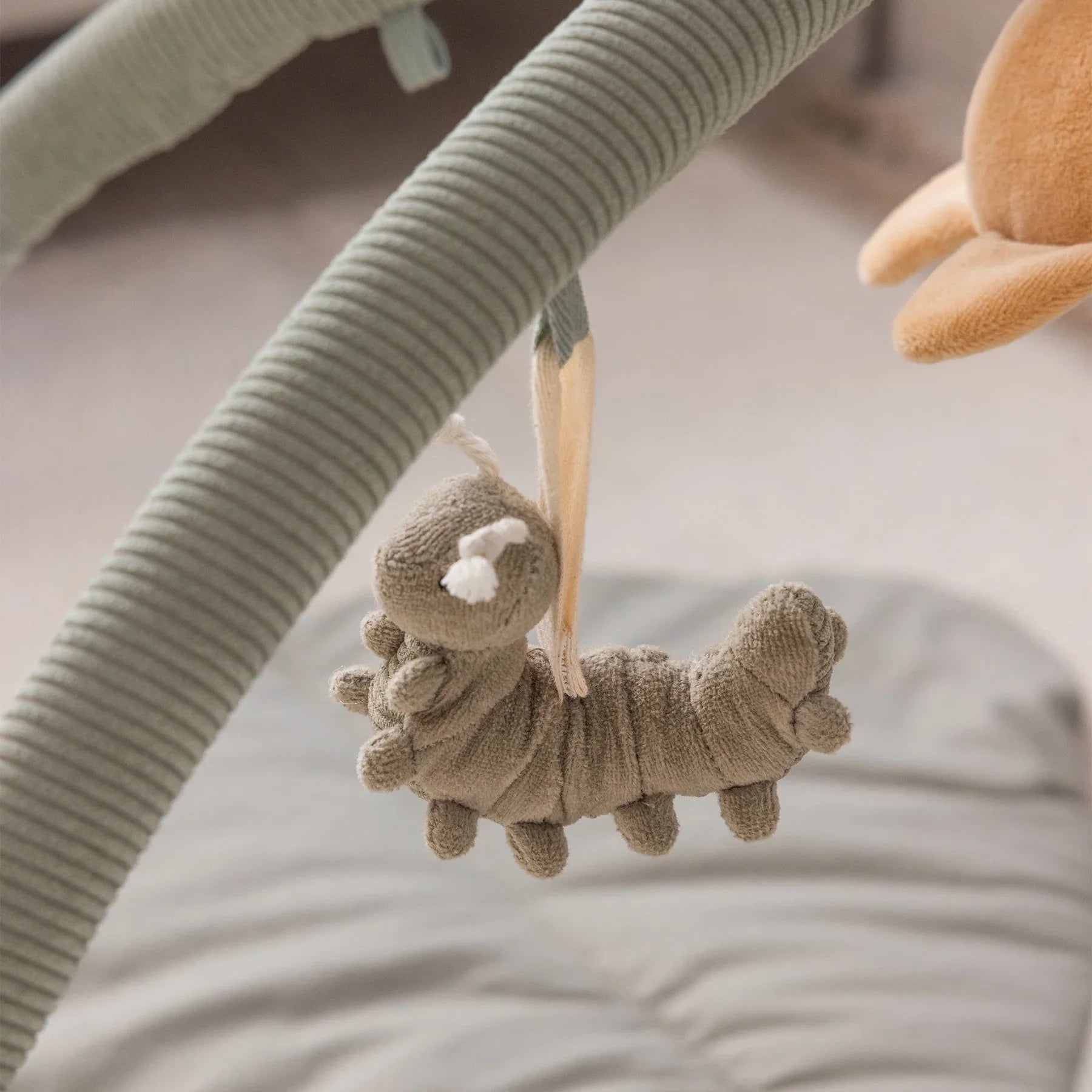A puha ívek könnyen rögzíthetők, a csatolt játékok pedig szabadon lóghatnak, és arra ösztönzik a kicsit, hogy elérje és megragadja.