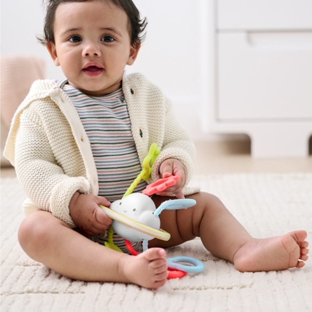 A felhő alakú érzékszervi játék nagyszerűen fejleszti a baba motorikus képességeit és szem-kéz koordinációját.