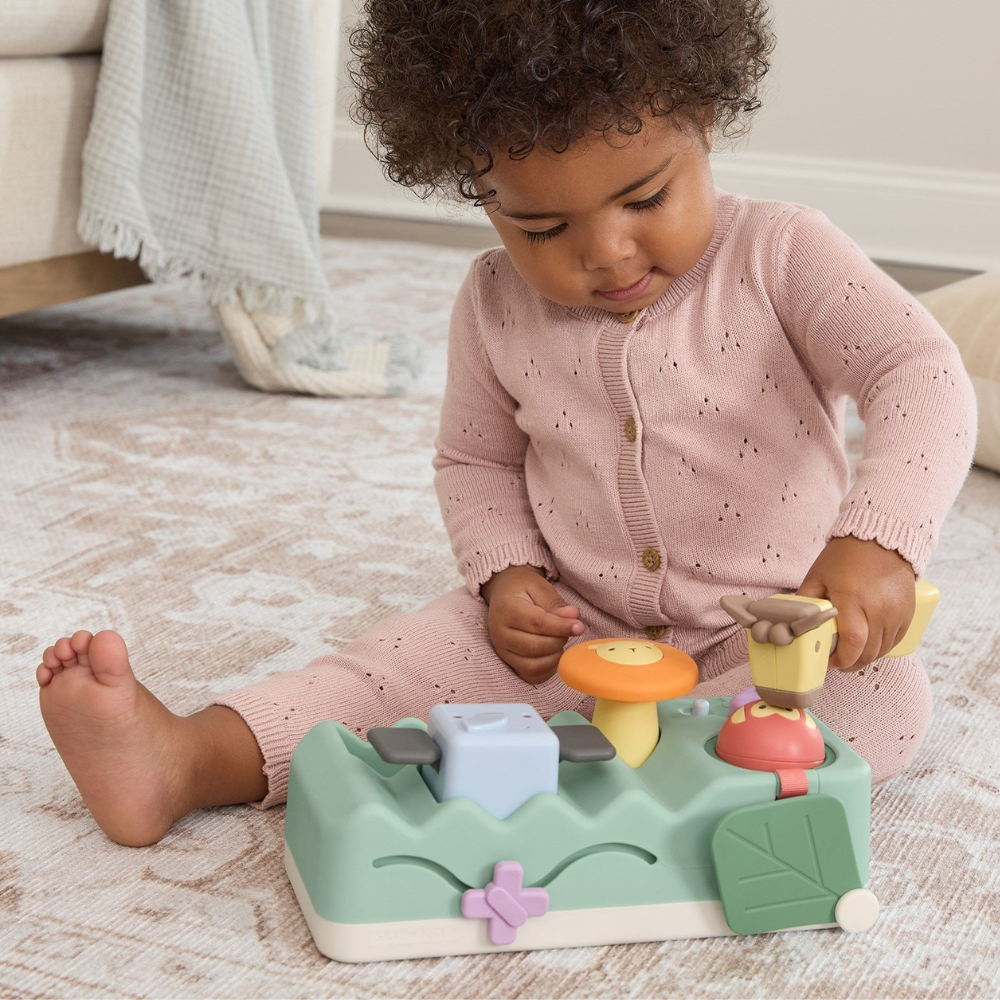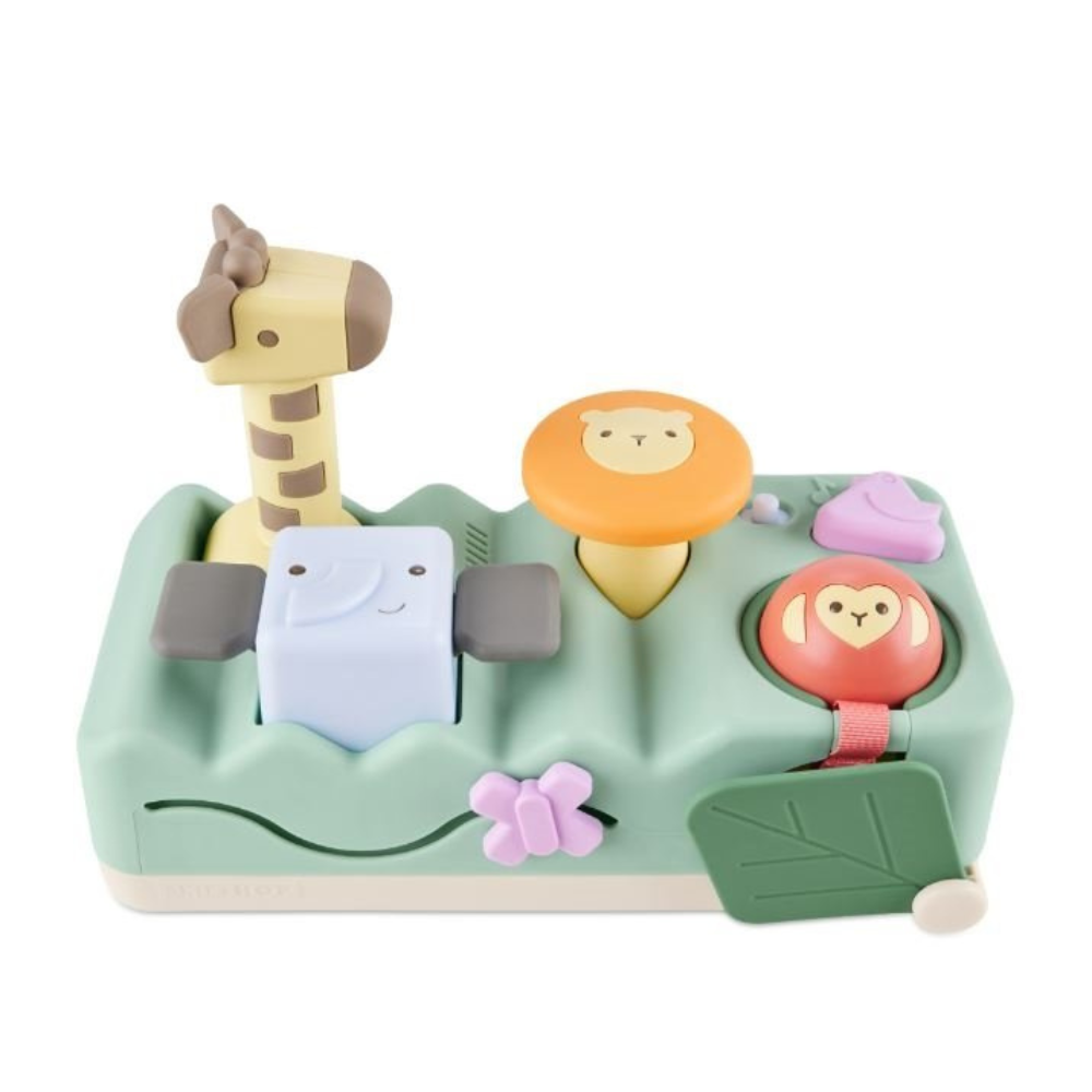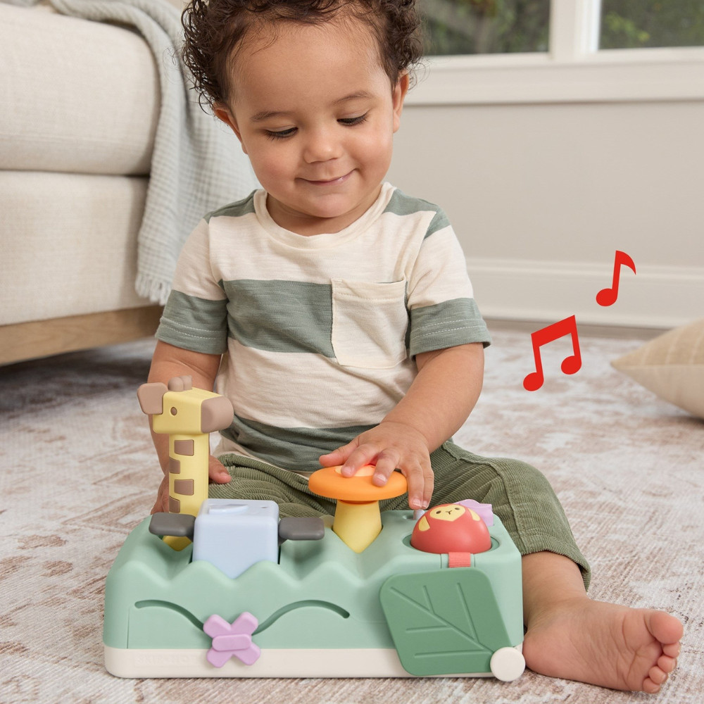 A Skip Hop zenélő és kopogtatós játéka egy egyedülálló 2 az 1-ben játék, amely a kalapálás örömét egy színes fényekkel, állathangokkal és felfedezésre váró izgalmas elemekkel teli zenei kalanddal ötvözi.