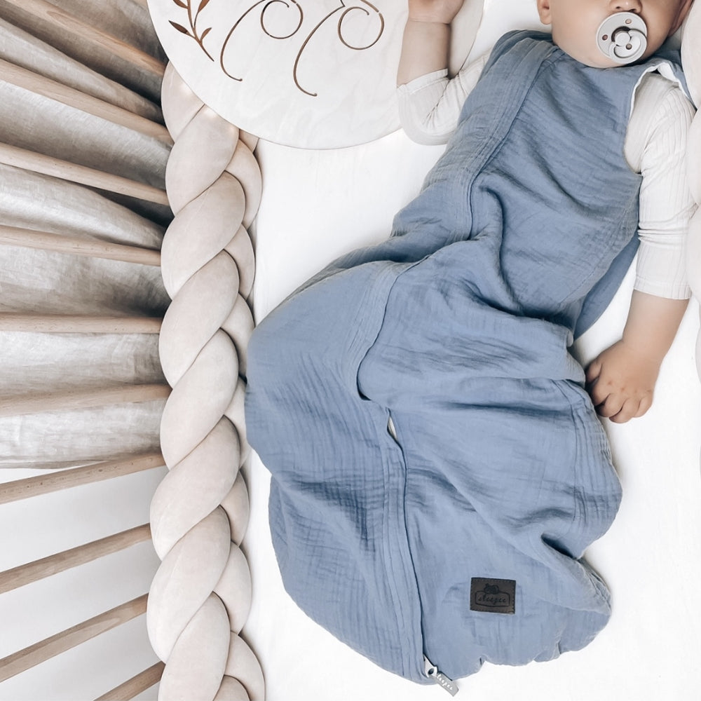 A kiváló minőségű, puha muszlinból készült hálózsák gyengéd a baba bőréhez, és kiváló légáramlást biztosít.