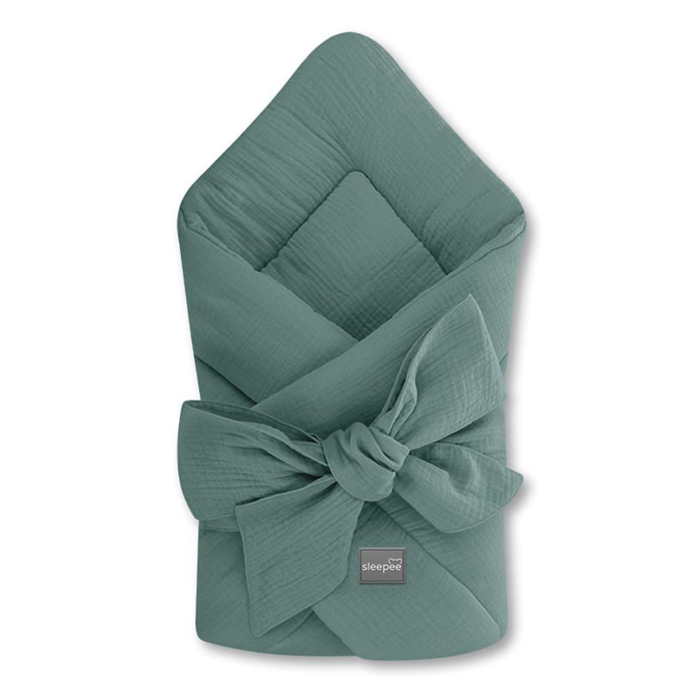 A Sleepee Ocean zöld muszlin babahornája minden fekvőhelyi felszerelés elengedhetetlen kelléke, és ideális babaköszöntő ajándékként is.