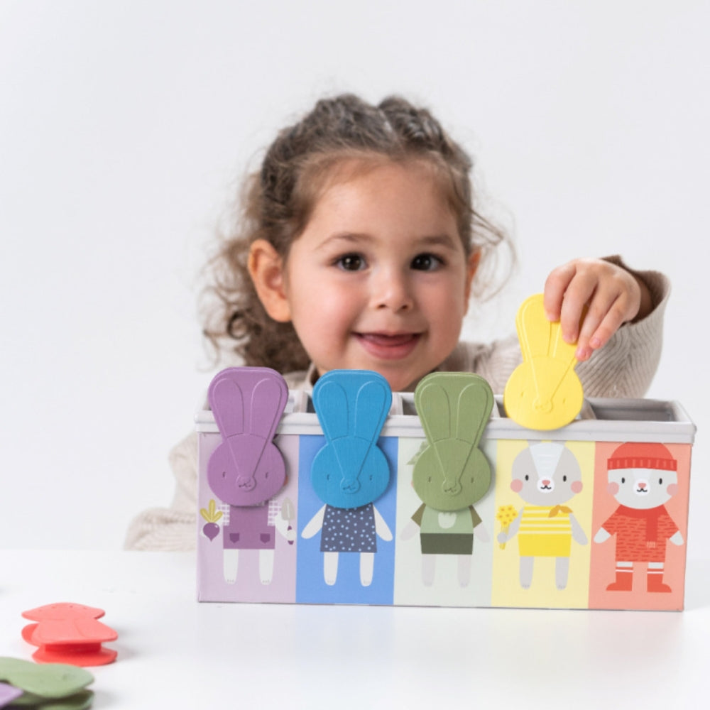 A készlet egy gyönyörűen illusztrált dobozt és 15 nyuszi alakú klipszet tartalmaz, amely órákig tartó szórakozást és tanulást biztosít gyermekének.