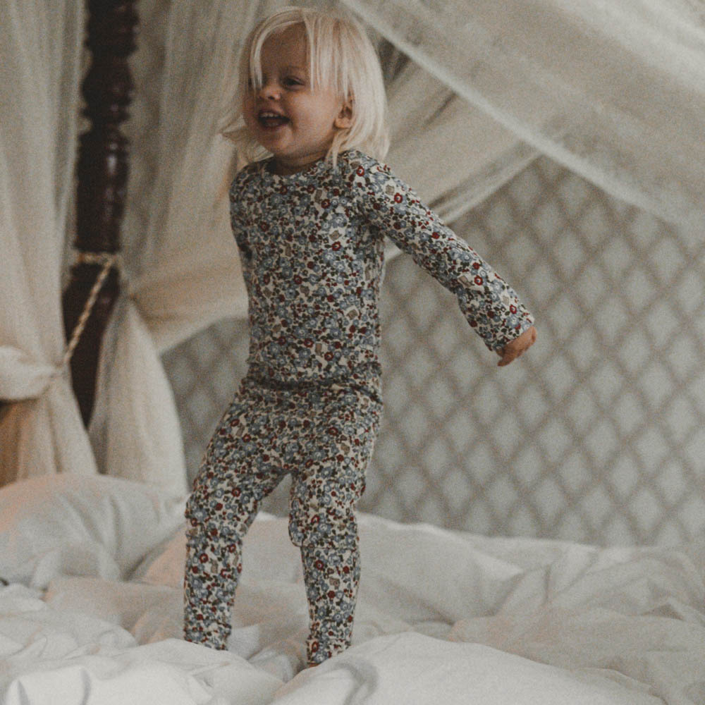 Imádnivaló puha csecsemő nadrág organikus pamutból és modálból Elois Flora nyuszik rouge by That's mine 56-os méretben.