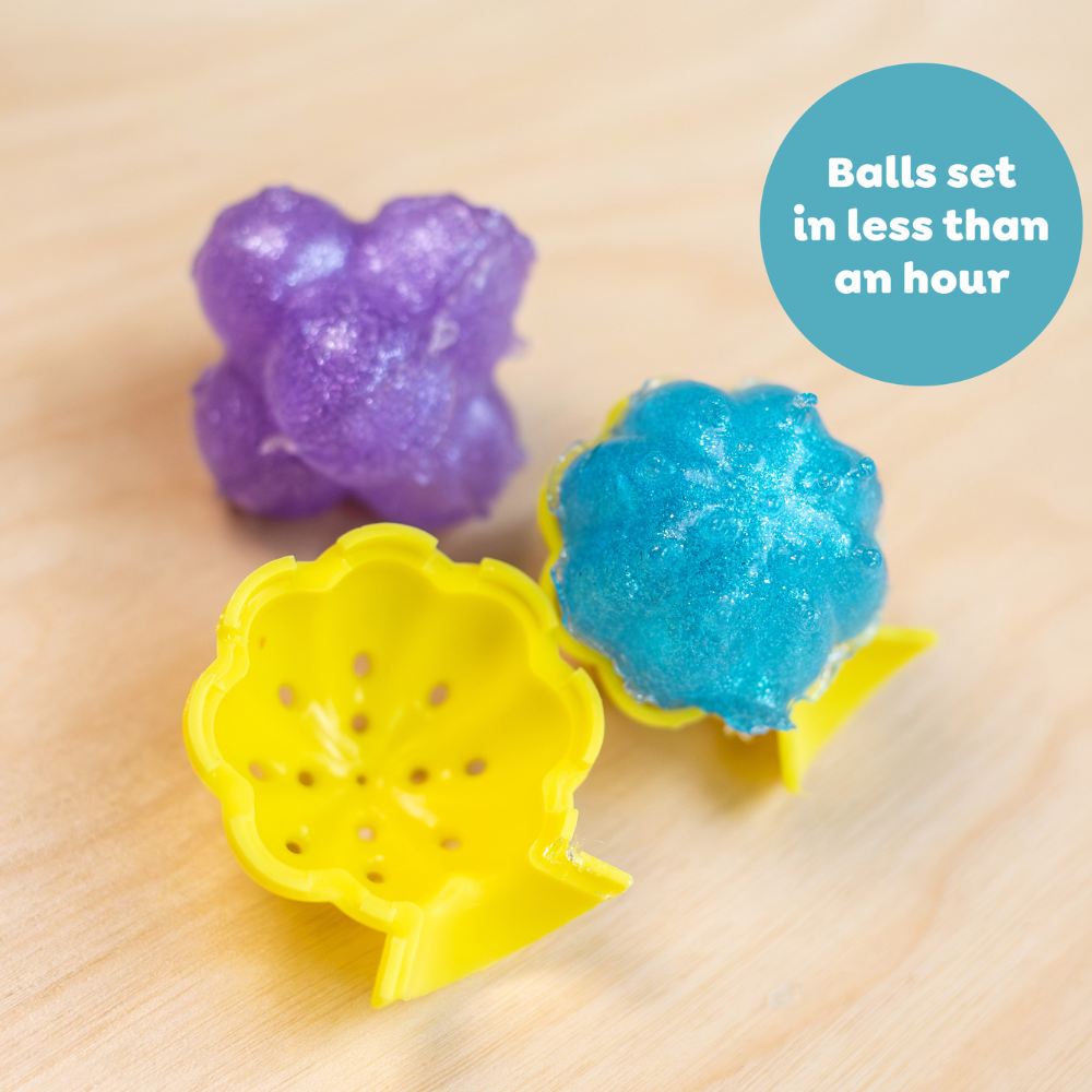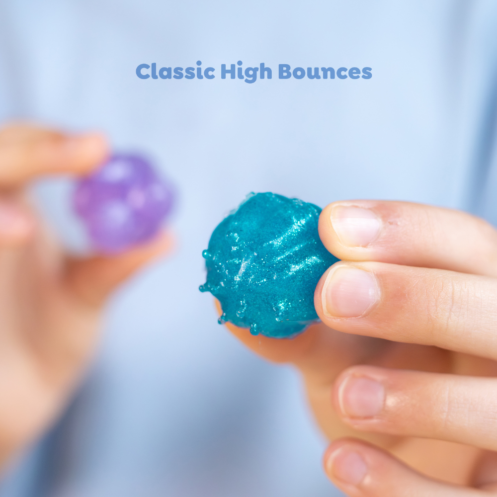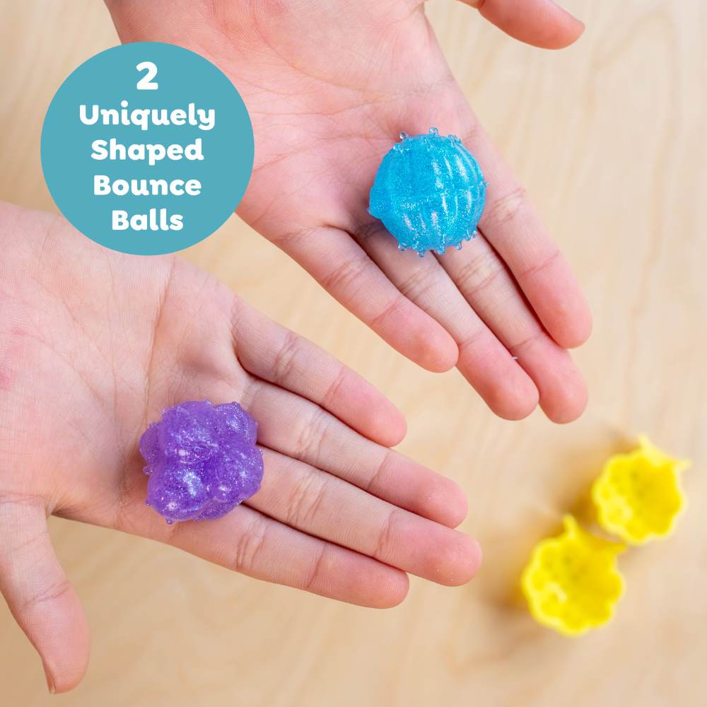 Ez a kreatív készlet két fényes golyó elkészítésére invitálja a gyerekeket: egy klasszikus és egy meglepő pattogós pályával.