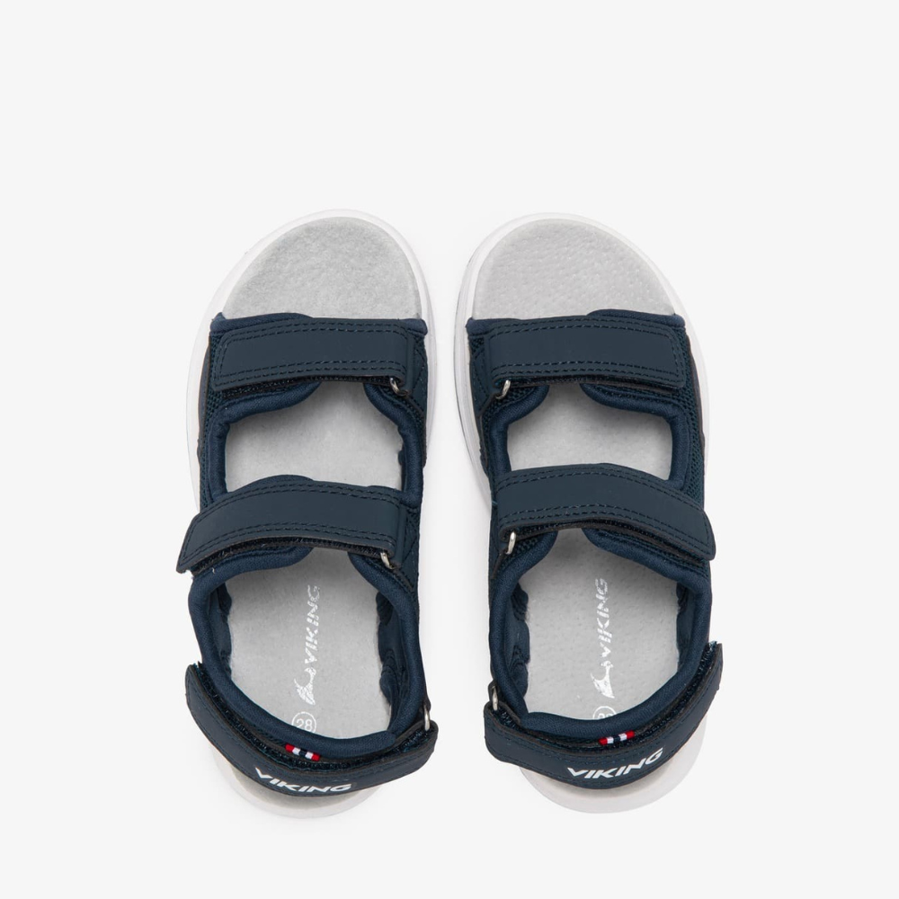 A Viking szandálok szellős, nyitott felsőrésze háromszoros tépőzárral rendelkezik, amely stabilitást biztosít, és könnyen a növekvő lábfejhez igazítható - a puha velúrbetét megakadályozza a kidörzsölődést, és segít a nedvesség szabályozásában a forró napokon.