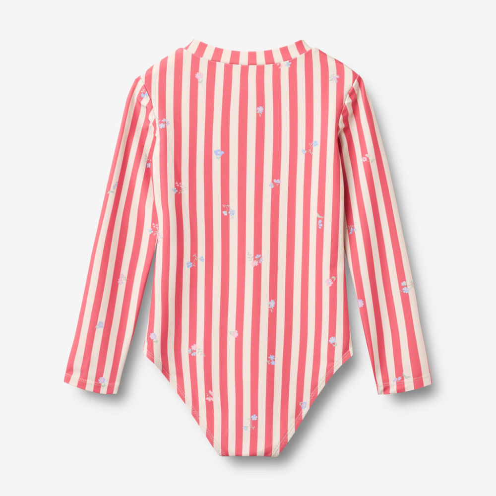 Wheat egyrészes gyermek fürdőruha L/S Margot piros csíkos virágok
