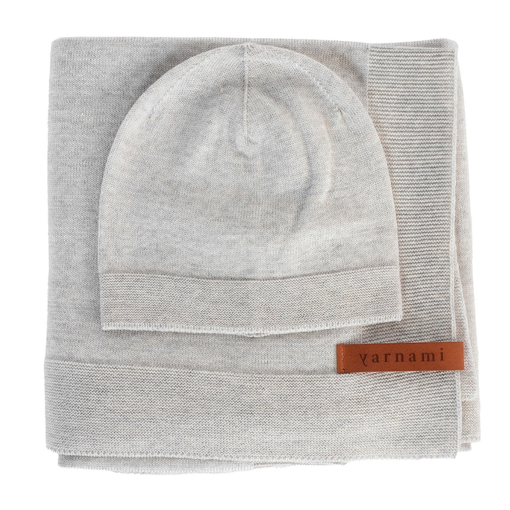 Yarnami by Poofi Cozy merinó készlet babának bézs-szürke