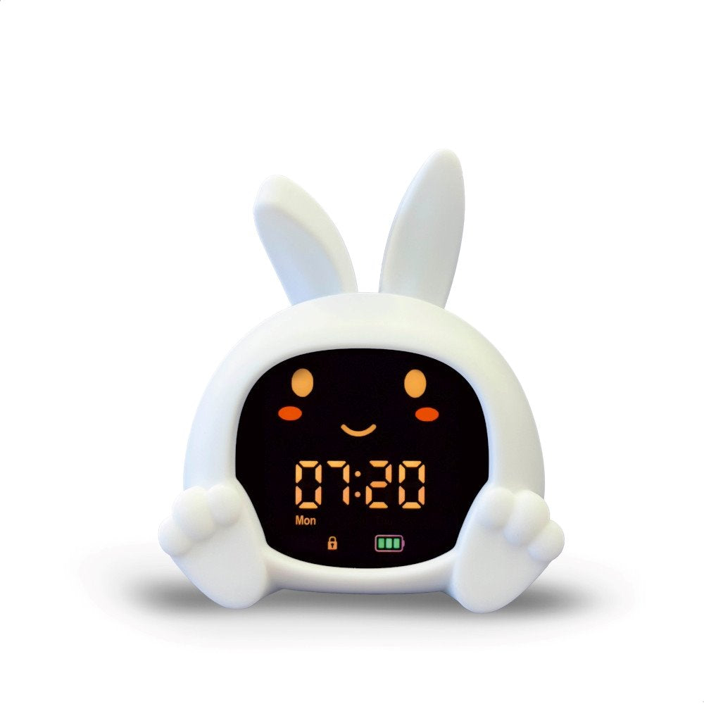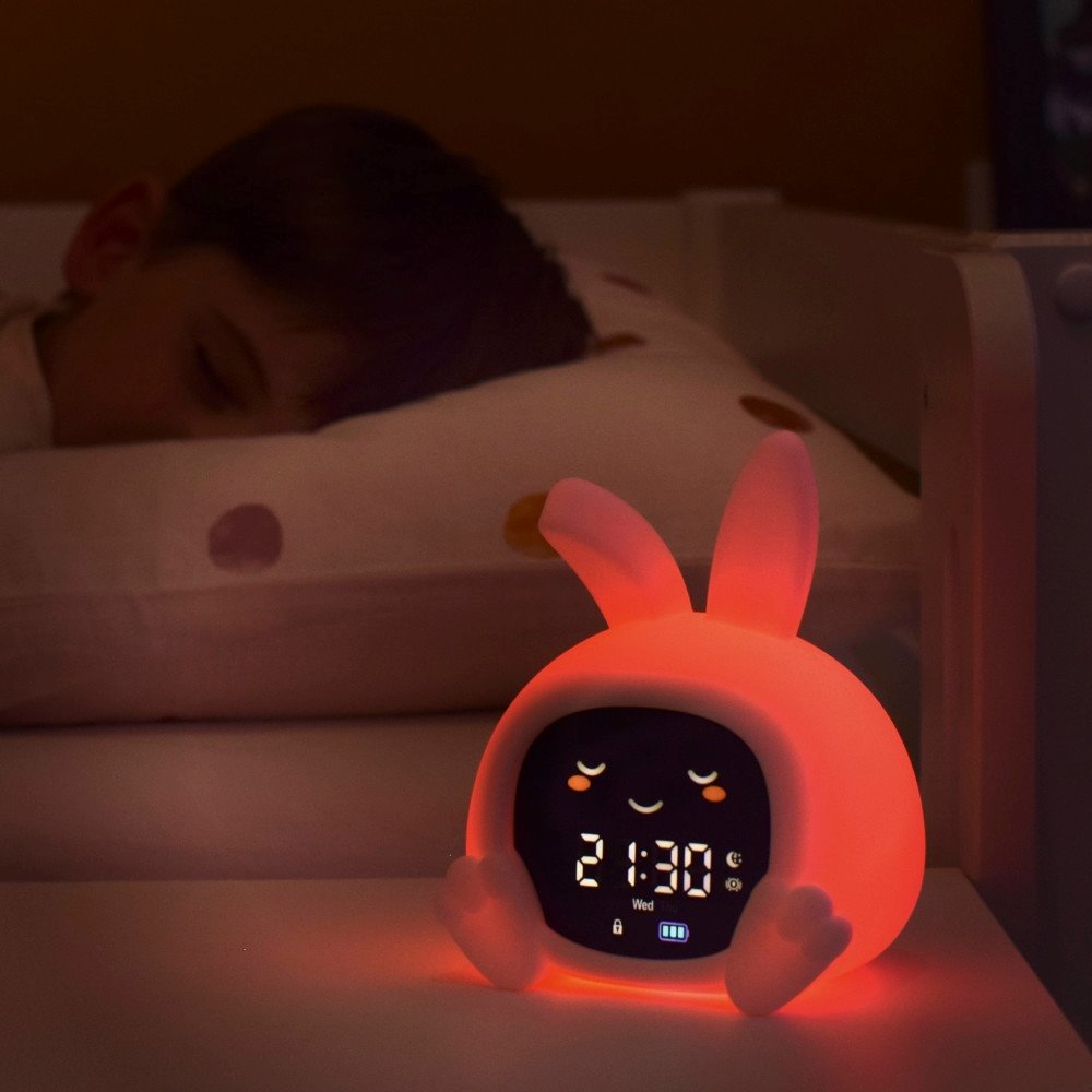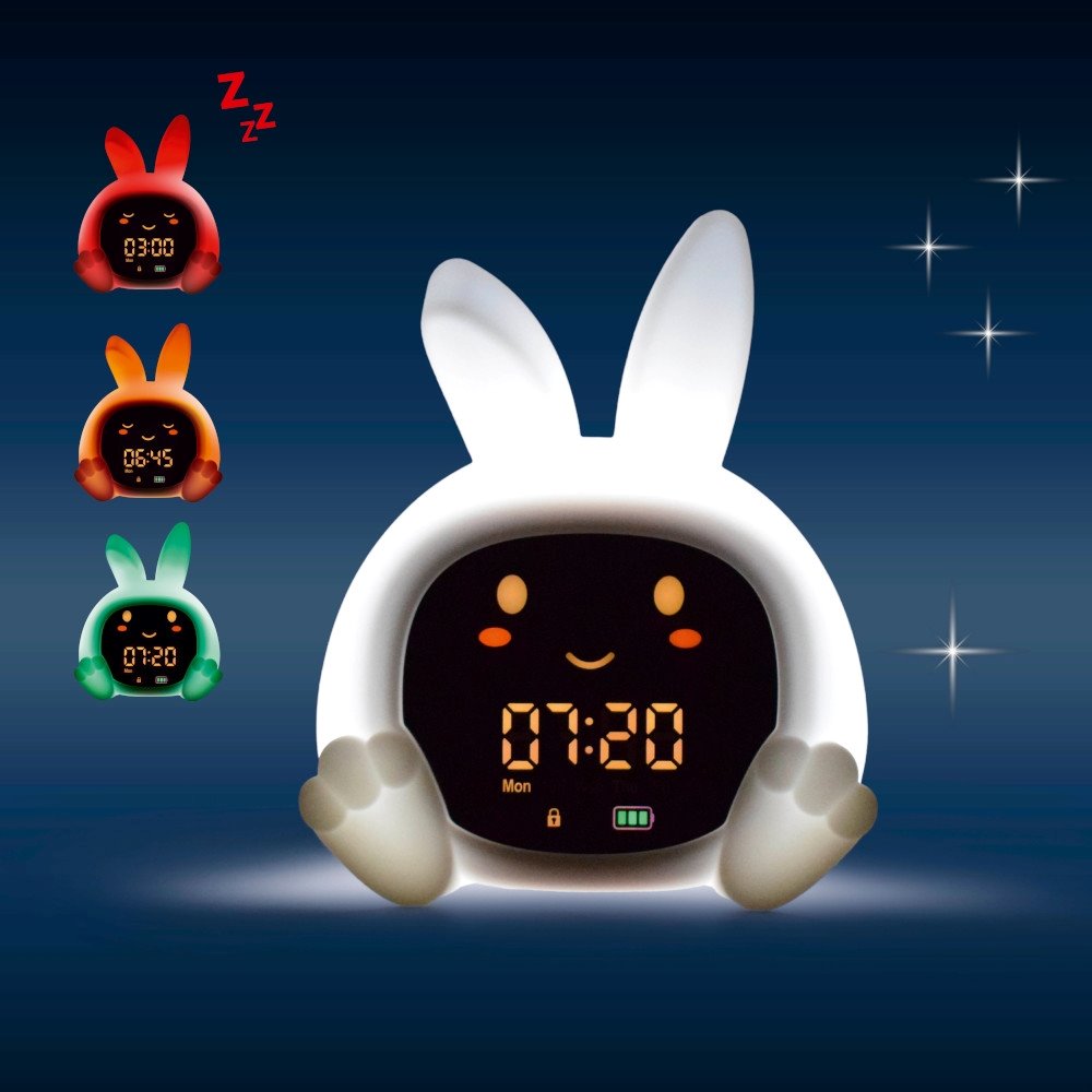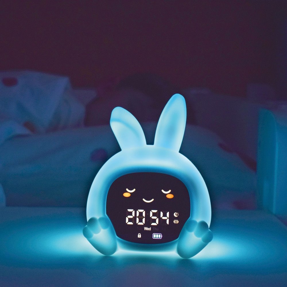 Egyesíti a baba alvás tréner által kínált funkciókat egy többszínű éjszakai fénnyel, zenélő dobozzal és első ébresztőórával.